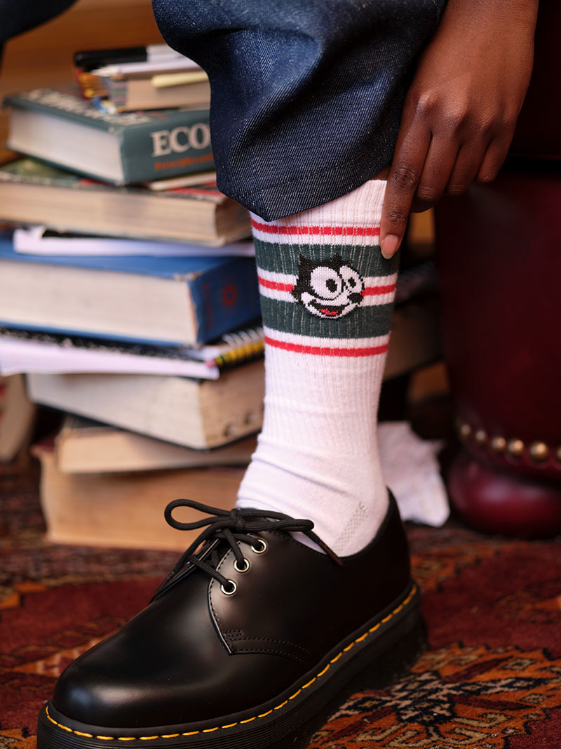 Según comenta el Chief Product Officer Karyn Hillman sobre la nueva colección de Levi’s x Felix The Cat: “Queríamos realizar una colaboración con Felix the Cat que sorprendiera a todos. Y se nos ocurrió este concepto de “Felix the Graduate” acerca de lo que llevaría Félix si fuera estudiante de universidad. El estilo universitario preppy es relevante hoy en día, y quisimos mezclar ese aire refinado con prendas fáciles y cómodas.