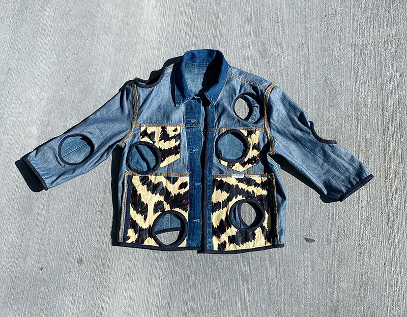 La chaqueta ha ido pasando por las manos de los tres elegidos en esta colaboración de Levi’s x Maria Testino para que la fueran usando y modificando. El concepto central de la colaboración a partir del cual Miguel Becer y Mercedes Bellido han partido es el de los viajes, la metamorfosis y la naturaleza.