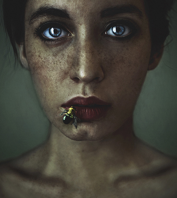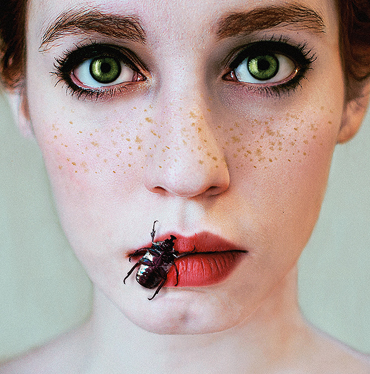 Esta fotógrafa y modelo, a la vez. Crea la historia, la estética, organiza el set y utiliza el control remoto para disparar la fotografía con el móvil. Todo unido en una persona. Posteriormente pinta con Photoshop las fotografías, convirtiéndolas en óleos.