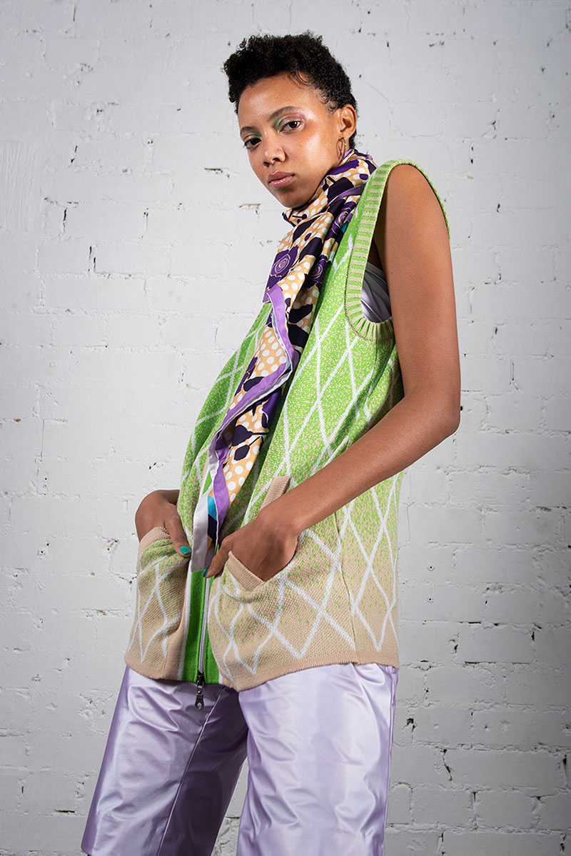 Colaboraste con la marca de gafas de sol Komono ¿Cómo fue la experiencia? ¿Estás colaborando con más marcas también? La colaboración con Komono el año pasado fue absolutamente increíble, me enseñó mucho sobre la industria de las gafas y el proceso de diseño detrás de esto. Soy un gran admirador de las colaboraciones, ya que te lleva en nuevas direcciones. Actualmente estoy trabajando en una colección cápsula con la publicación de Estocolmo The Forumist y la tienda web Pre O’Porter en una mini colección que se lanzará a finales de este verano. Otro esfuerzo de colaboración que ya está disponible es una colección de prendas de punto que diseñé con The Guestlist, ¡un nuevo destino en línea para el lujo sostenible de prendas de punto! Tuve la suerte de recibir esta oportunidad como recompensa por mi colección de graduación de Woolmark Company, Südwolle Group, Peterseim Strickwaren y Karim Guest, y actualmente está disponible para pre-ordenar en theguestlist.com.