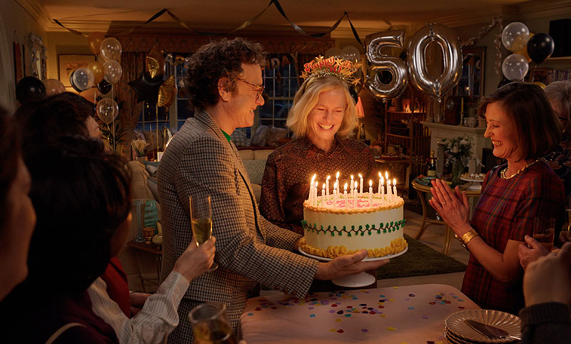 “Here” cubre la historia completa de una familia, sin salir de una única habitación y sin cambiar un único punto de vista. Pero si lograr eso ya sería formalmente una hazaña, “Here” va más allá y nos muestra ese mismo “ángulo de la vida”, ¡desde los tiempos de los dinosaurios! Como diría Douglas Adams, la vida, el Universo y todo lo demás fluye ante nosotros sin que nuestra mirada tenga que moverse. Y como parte del desafío, la pareja protagonista, interpretada por Hanks y Wright, crece, madura y envejece hasta mostrarnos su vida entera, con una perfección técnica que deja en pañales el “de-aging” de “El curioso caso de Benjamin Button”.