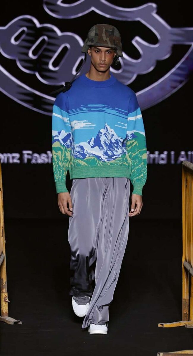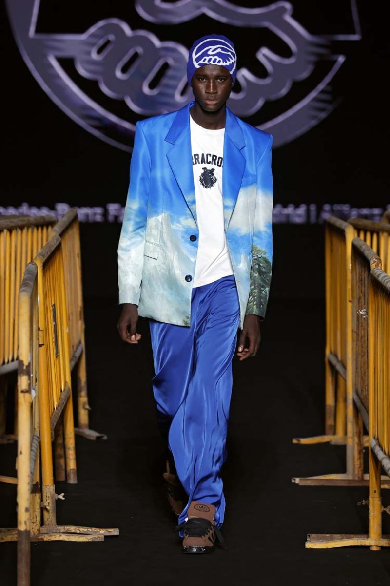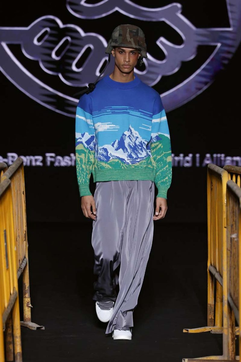 En el ecuador de la jornada, 93 Sierra/Crosses y Sabela Juncal nos enseñaron lo importante que es proteger el origen. 93 Sierra/Crosses de Langreo (Asturias) nos trasladó a la naturaleza pura que tiene el norte de España. Oliver, diseñador de la marca, para atraer la atención del público más joven, dirigió su proyecto a la moda urbana, sin olvidar la protección de los movimientos que permitieron un avance en derechos, como son los sindicatos de Asturias. Eso sí, 93 Sierra/Crosses añadió referencias del punk o el hardcore actual. Como dato curioso, el jersey que puedes ver arriba en las imágenes está inspirado en una famosa marca de leche de Asturias. Las prendas de esta firma tienen un por qué y un motivo.