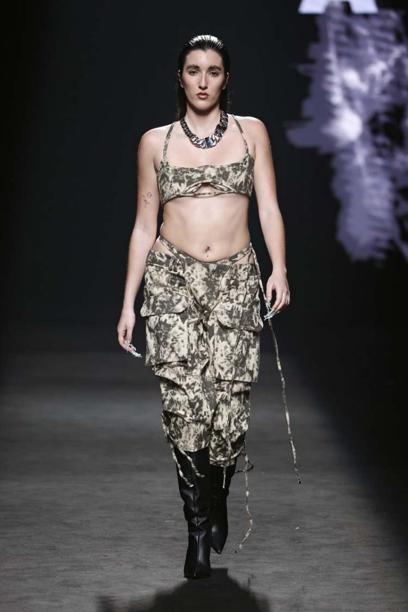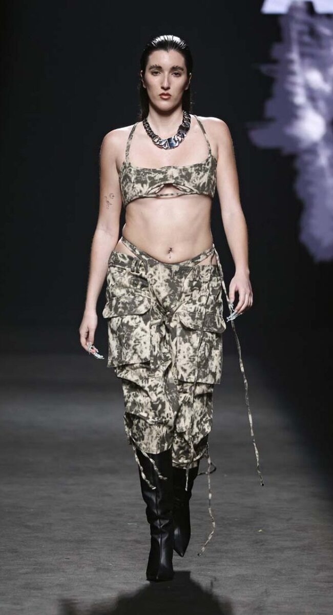 Para cerrar este espacio, Alejandre volvió a este certamen con más fuerza que nunca. La diseñadora que la hemos visto evolucionar, en la colección “Rising”, enseñó todo lo que había aprendido, y quien era ella. Como en otras ocasiones, pero rozando la perfección, los diseños de Alejandre trasladaron el mensaje de la calle y del poder que tiene la lencería. Tras vestir a Bad Gyal, Dua Lipa o Megan Fox, da un paso más allá y juega con los tejidos rígidos y relajados, para añadir más fuerza a la prenda. Si te fijas las prendas de Alejandre las podemos encontrar en cualquier armario, pero tienen algo que las hace destacar: la desconstrución de las piezas y dar una nueva vida, o mejor dicho sentido, a la moda.