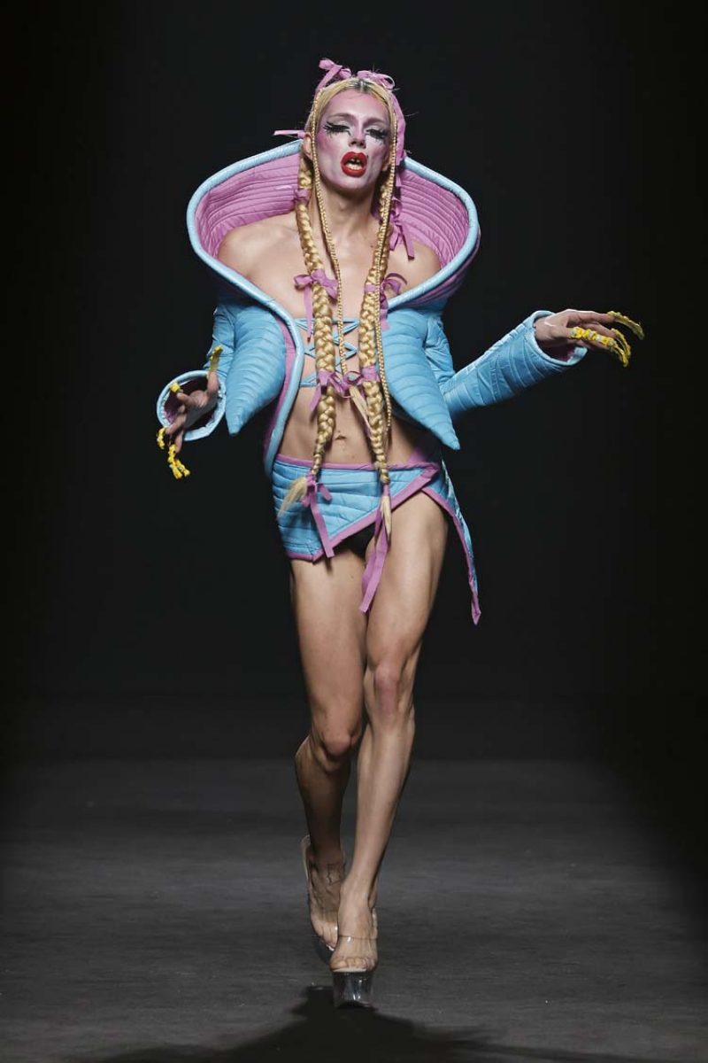 No tenemos ninguna duda que el último día de Mercedes-Benz Fashion Week es una de las más visitadas, porque hay un continuo envió de estímulos. A muy pocas horas de conocer el ganador, tocaba todavía por ver las propuestas de Charlie Smits y Alejandre. Seguramente conozcas el trabajo de Charlie Smits como artista visual, pero no como diseñador. El diseñador por primera vez desarrollo su obra en una colección bajo el nombre de “Visión”. Si al finalizar el desfile, cierras los ojos y piensas en que has visto, no sabrás si son fantasías repletas de color, o una sátira sobre la sociedad de 2023. Samantha Hudson, fan incondicional de la marca, no lo dudó y cerró el desfile de Charlie Smits. Solamente podemos decir que fue una explosión de color y de una moda que proviene de otra galaxia.