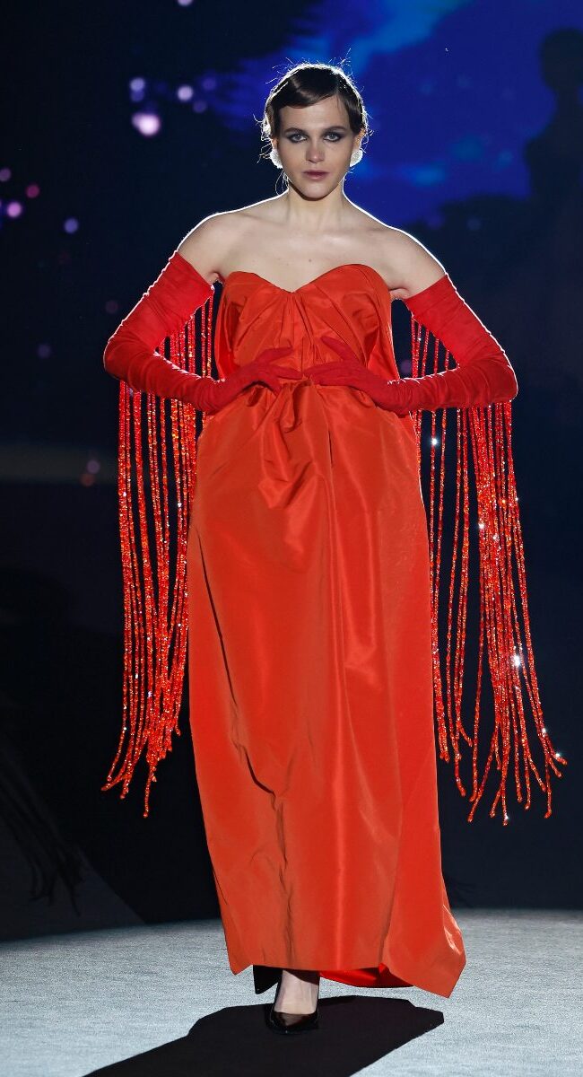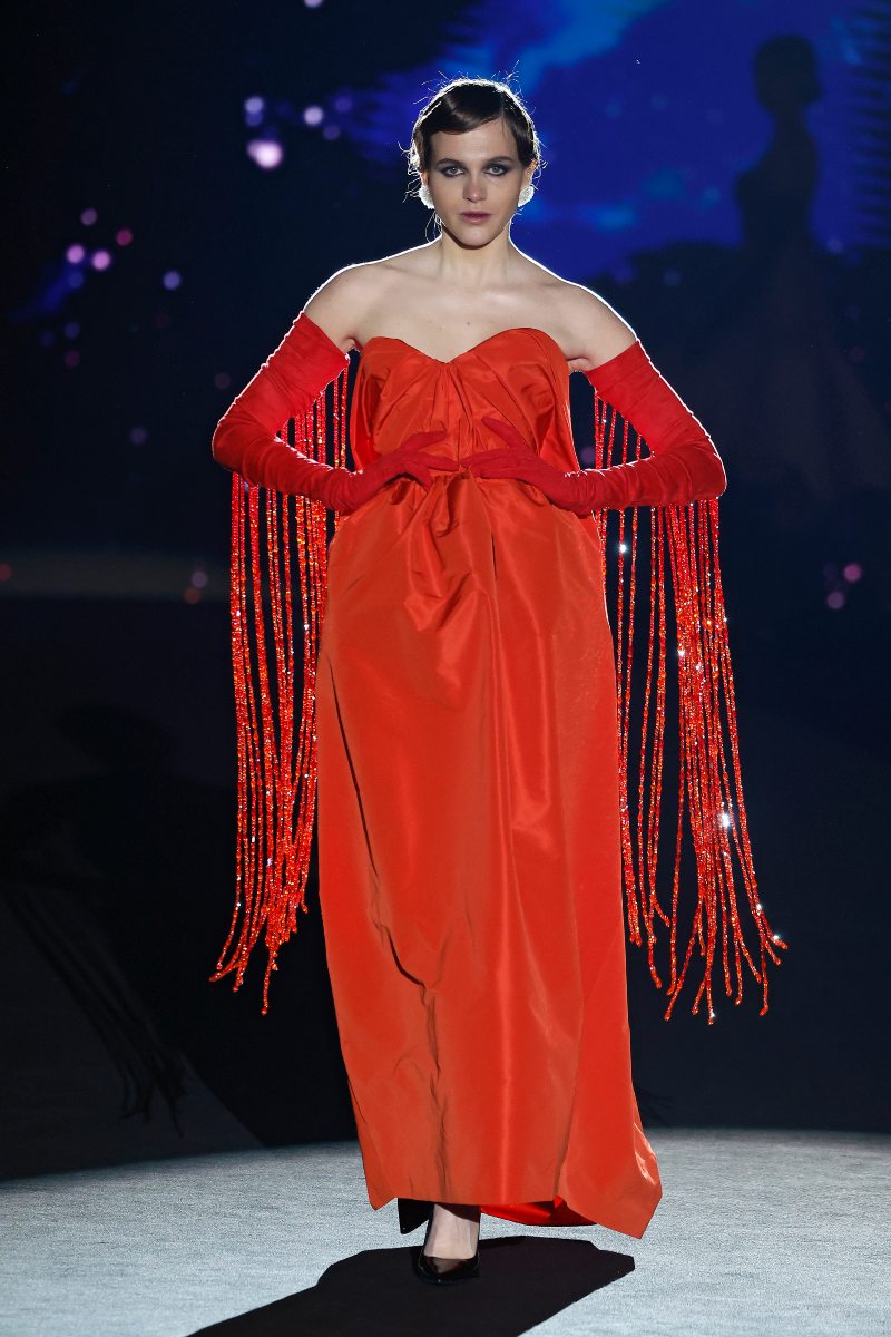 Tras el cierre del show de Guillermo Décimo, tocó el turno a Fátima Miñana. Ganadora en el año 2020, la diseñadora mostró “PRECIOUS DECAY“, su tercera vez en Mercedes-Benz Fashion Talent. Aquí se confirmó como cuidado hasta el mínimo detalle, porque cada pieza es única. Si Guillermo Décimo devolvió el glamour de Moulin Rouge, Fátima Miñana trasladó la decadencia de la época de Belle Époque. ¿Cuál fue la inspiración de la diseñadora? Claramente, en los cuadros oscuros y con mensajes claros de Anglada-Camarasa. El pintor tenía como protagonistas a las mujeres fantasmas o cadavéricas. Este fue el punto de partida de Fátima Miñana, pero sin olvidar los límites de la sensualidad que protagonizan los diseños de Fátima Miñana. Uno de los contrastes, y que más gustó, fueron los falsos cueros y la luz hacía deconstrucción de las prendas.