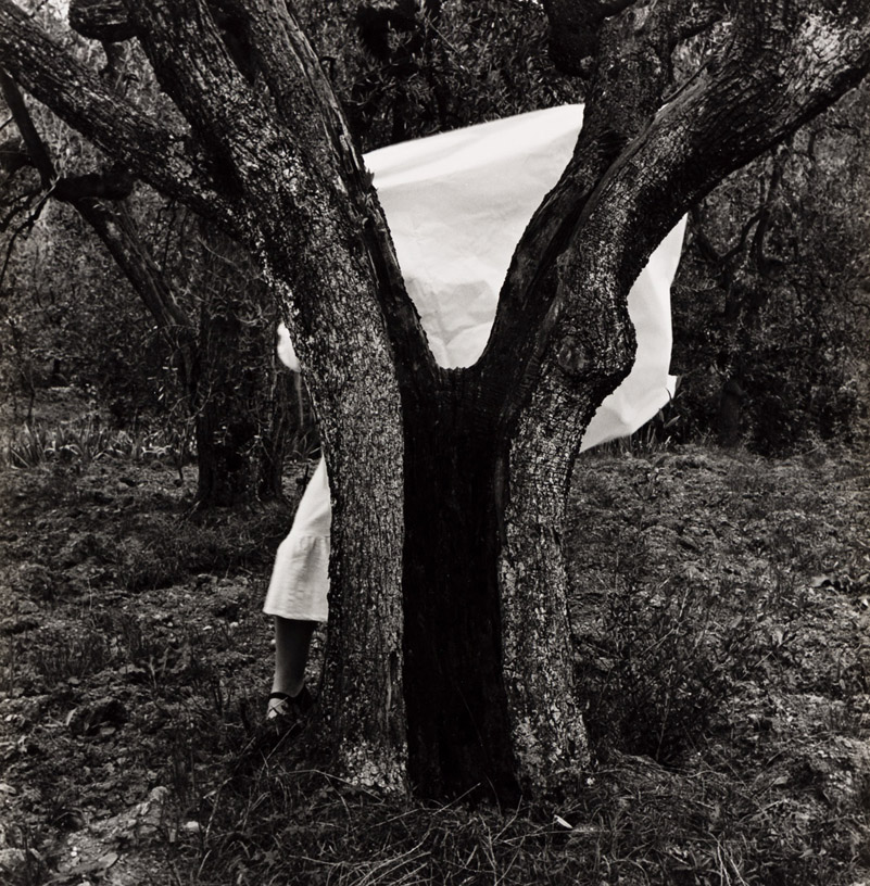 La exposición “Centenario Surrealista” incluye una obra sin título de la serie Ode to Necrophilia (1962) de Kati Horna (1912-2000) en la que se aprecia a una mujer encapuchada junto a una máscara mortuoria. Se trata de un ejemplo perfecto de la búsqueda de la artista de encontrar deseo durante periodos de pérdida y dolor.