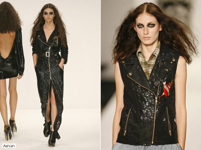 Todd Lynn es otro estandarte de los jóvenes valores británicos, con su sastrería rock’n’roll y sus cortes esculturales. Y hablando de rock’n’roll nadie se apodera mejor de referencias musicales y de la calle y las hace femeninas, elegantes y con raudales de actitud que Ashish. Sus estampados de corazones con ojos, lentejuelas por doquier e inspiración entre militar y party girl demostró que la valentía en el vestir es lo que muchas veces se echa de menos en la moda.