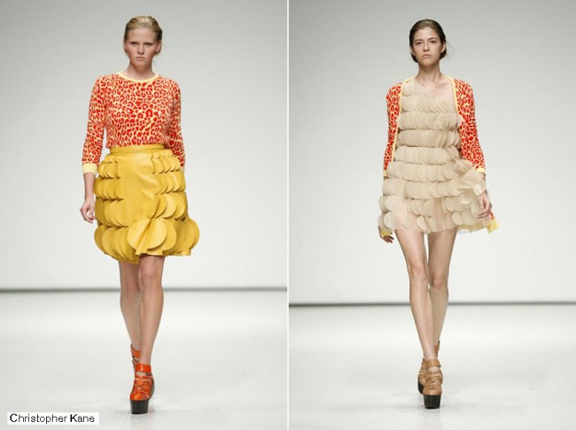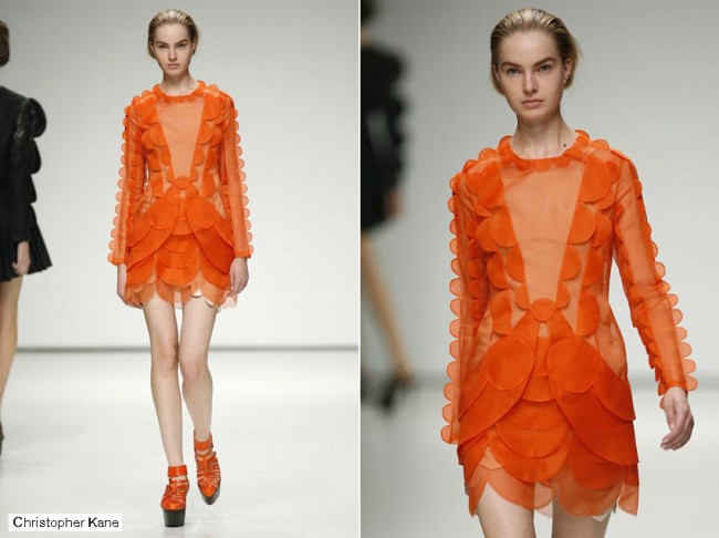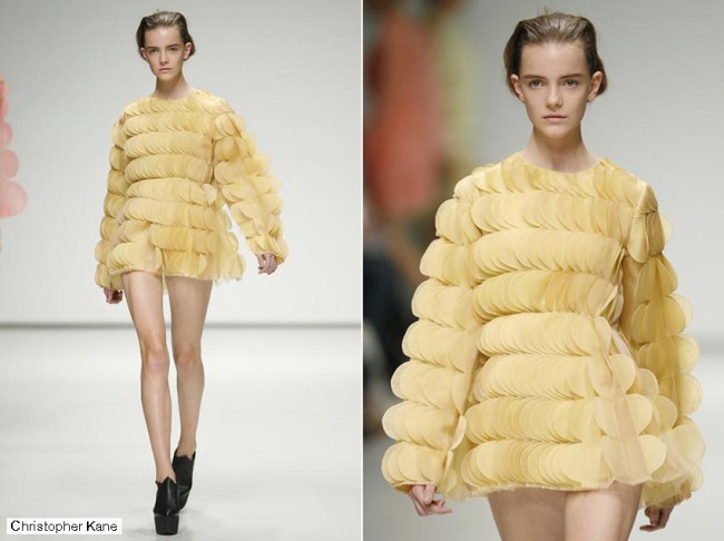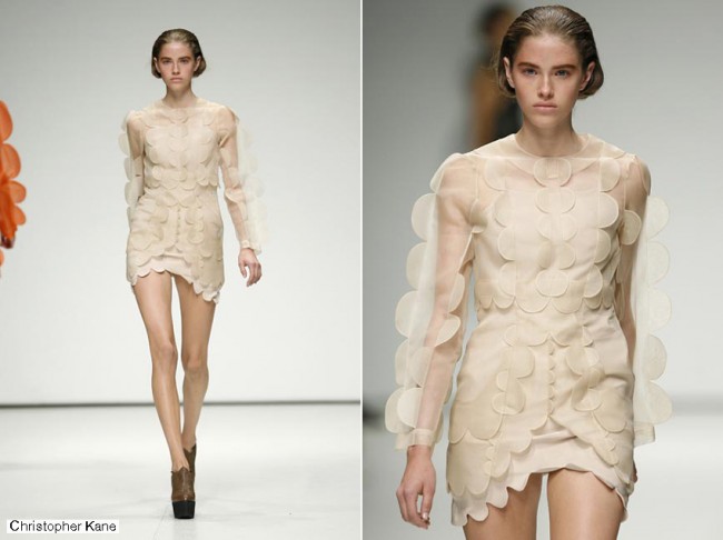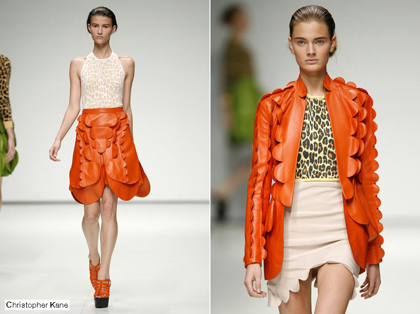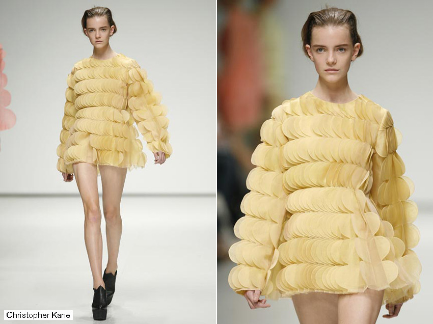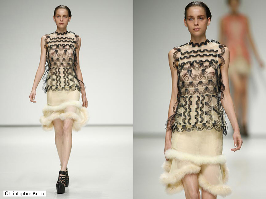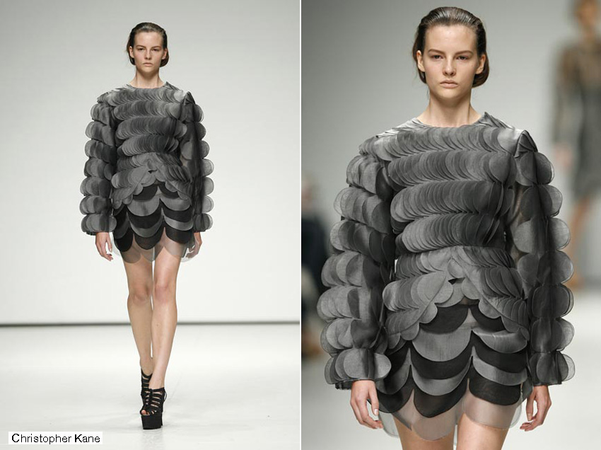Si hay una cosa por la que Londres es famosa es su cantera de recién graduados que pronto se hacen un nombre en la escena internacional. Sin duda Christopher Kane es el mejor ejemplo del fenómeno y su colección de estructuras medievales en chiffon de inspiración animal (desde rinocerontes a armadillos) confirmó su versatilidad como diseñador y una vez más reafirmó las razones de su fulgurante estrellato.