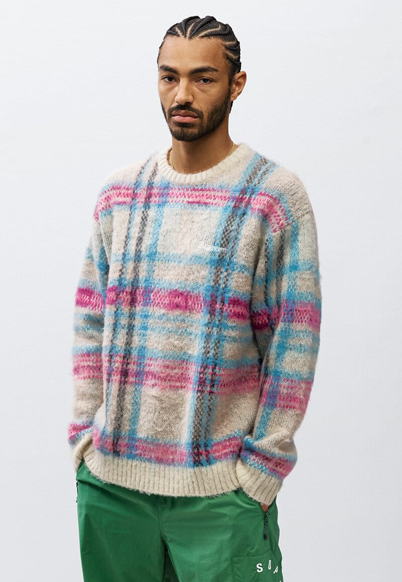 Un paseo por las diferentes culturas, desde las esfinges bordadas en sudaderas, las caligrafías chinas o las prendas con más peso cultural como el cortavientos con tejido Chullo. Originalmente el chullo es un gorro con orejeras peruano, tejido en alpaca y decorado con dibujos multicolores, ahora esta pieza típica sudamericana se transforma en chaqueta. Pero también México está presente con su manta Tlaxcala, que se transforma en una bomber.