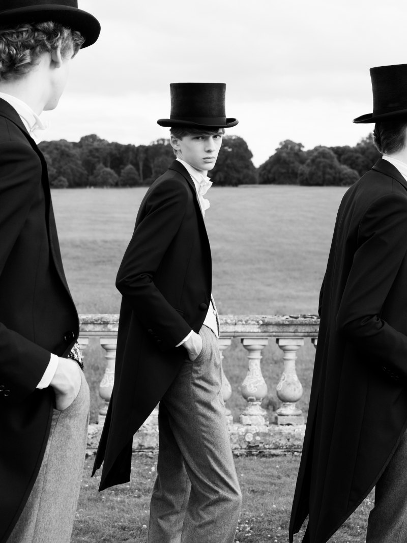 La nueva colección mira a la cultura y sociedad aristócrata de Inglaterra en los años 20, y lo hace a través de un estudio sobre el clásico look de traje inglés. Ahora, el hombre Celine se transforma en un niño, que regresa a su palacio luego de un semestre en el Eton College para un verano hedonista y lleno de excesos.