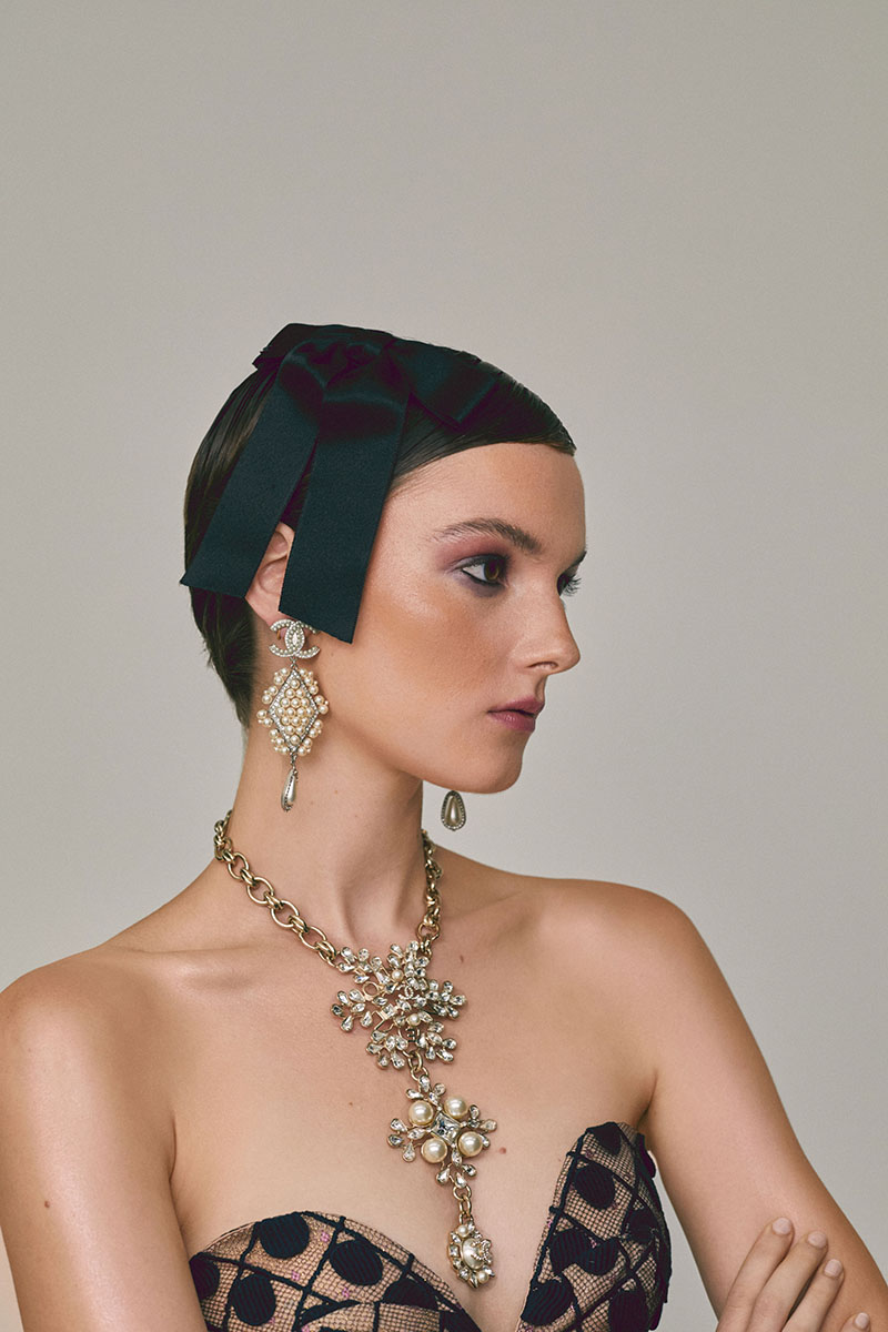 Magali lleva un look lady-grunge con corsé de Ana Locking, y collar, pendientes y lazo de Chanel. La piel perfectamente trabajada con la prebase Hydro Grip Primer y la base de maquillaje en stick Flex Foundation Fair/Matte Foundation Light y el corrector Flex Concealer Fair. El rostro se ha moldeado con el bronceador Matte Bronzer en color Baked, y el iluminador Holographic Stick en tono Mars. La mirada y labios los hemos trabajado con el stick Lip+Cheek en tono Quickie. Además, en ojos, hemos aplicado Long Wear Gel Eyeliner en color Boss; en pestañas, Kush Mascara; y en cejas Kush Brow en tono Grind. Todo de Milk Makeup y lo encontrarás en Sephora.es