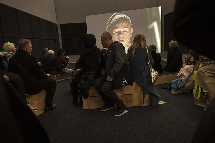 Una propuesta separada en dos salas de formato diferente. Por un lado una fascinante escultura negra, grande y redondeada, metida en una sala oscura y angosta, titulada A Monument for Lost Time. Una extraña forma cuyos contornos parecen moverse y evolucionar, según desde dónde la observemos. Por el otro, un video de dos pantallas -titulado In Vitro-, poético y trágico, que nos muestra el diálogo, la transmisión y la relación entre una mujer mayor -dueña de un vivero de plantas subterráneo- y su cuidadora. La historia transcurre en Bethlehem, décadas después de una catástrofe ecológica, y la joven cuidadora será la responsable de replantar y repoblar el planeta tras el desastre, liderando una comunidad de humanos restante. Una fábula más cercana al existencialismo becketiano que a la ciencia-ficción. Una bella obra que ofrece un acercamiento misterioso y poético a los temas de la memoria personal y colectiva, la historia y la responsabilidad humana y la identidad de cada uno.