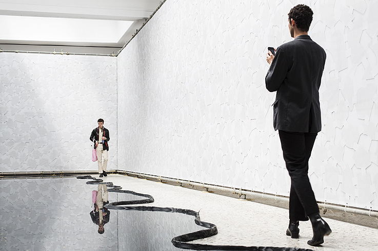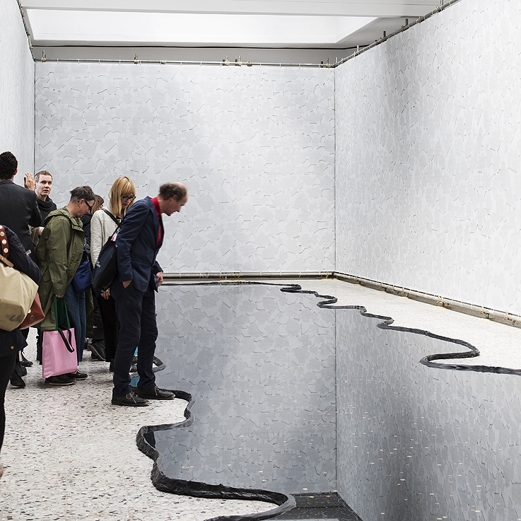 Se merece una mención especial por el buzz que generó esta propuesta de la siempre interesante Laure Prouvost. “¿Has visto el pabellón francés?”, era la pregunta más frecuente en los pasillos de las exposiciones en Venecia y en los caminitos de los Giardini. La frase se refería a la simple y evidente obviedad -haber pasado a verlo- pero sobretodo a la larguísima cola -entre 45min y 2 horas- que siempre había en su entrada. Seré sincero: yo no lo vi. Ni ganas de esperar 1 hora, en un opening de dos días, con todo lo que había que descubrir en ese momento. Me han dicho cosas buenas de la manera en la que la artista trató el espacio, construyendo una especie de túnel que, supuestamente, iba a unir los pabellones de Francia e Inglaterra, y permitía entrar así en su mundo onírico y fantaseado. Otros dicen que está sobrevalorado aunque todos destacaban su interesante puesta en escena, falsamente caótica y envolvente, llena de móviles rotos y restos de lo que parece el fondo de un océano, y sobretodo su video de aire surrealista y sugestivo, realizado, en parte, en la propia ciudad. No puedo valorarlo realmente pero si van “fuera de temporada” debería ser una de las posibles paradas. Aunque solo sea para decir que lo han visto, algo que cada vez se lleva más en el mundo del arte contemporáneo. Y más en Venecia donde cada vez hay más cosas que ver y más colas para entrar.
