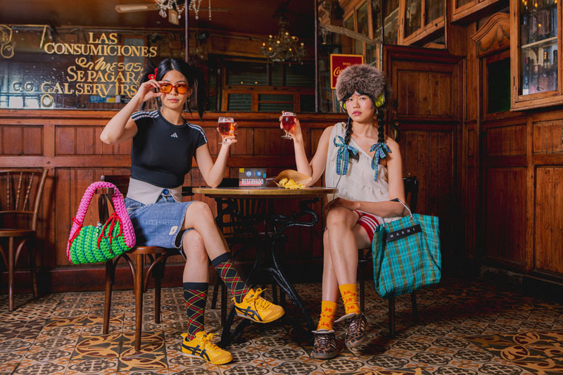 ¿Quién dijo que la moda y la tradición no se llevan? En las calles de Barcelona, dos jóvenes desprenden un aire urbano y contemporáneo mientras se sumergen en la esencia más pura de la ciudad condal. Con sus zapatillas deportivas y prendas oversize, reinterpretan el concepto de turista, demostrando que la autenticidad no está reñida con el estilo. Y es que, en estos tiempos de constantes novedades, son los lugares con historia los que marcan tendencia. Los bares de toda la vida, con sus suelos de mosaico, sus barras de madera y sus clientes habituales, se convierten en el escenario perfecto para una moda que busca inspiración en lo cotidiano.