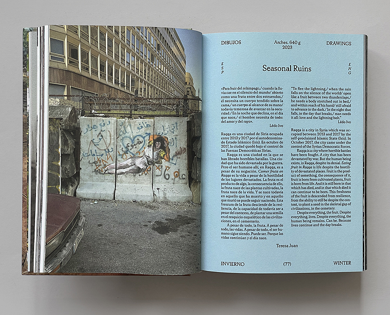 Así pues, este libro, en forma rectangular y tapa dura, bien podría servir como cuña con la que bloquear las puertas giratorias del Banco Central; Como compañero de placer y aventuras ; Como pequeño escalón en el que apoyarse para saltar una valla; Como almohadón para dormir bajo un árbol; Como objeto arrojadizo dirigido contra un escaparate ; Y también, porqué no, como libro, reivindicando la pausa, el silencio y lo atemporal frente al paradigma dominante de la productividad.