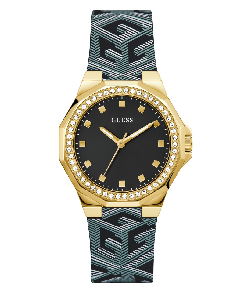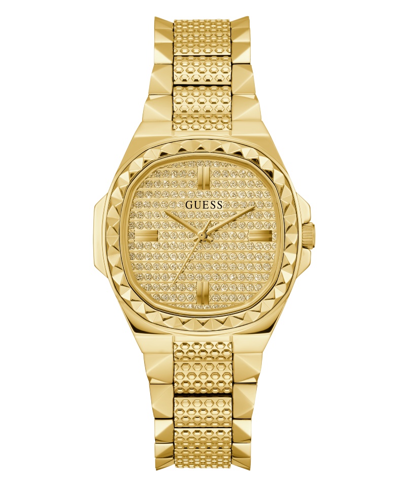 Si llevar un reloj con monograma por todos lados es un poco demasiado, Guess también nos ofrece un estilo más pulido de esta silueta. El Avril rescata la misma caja de acero en forma octogonal de 38MM y la saca a relucir por sus acabados en plateado o dorado. Todo se mantiene tan solo un poco más comedido y la esfera se presenta como un fondo negro para los indicadores dorados. La supresión del monograma en la caja deja que el bisel coronado en brillantes brille por sí mismo, dándonos uno de los mejores complementos para un look de otoño delicado, pero con actitud.