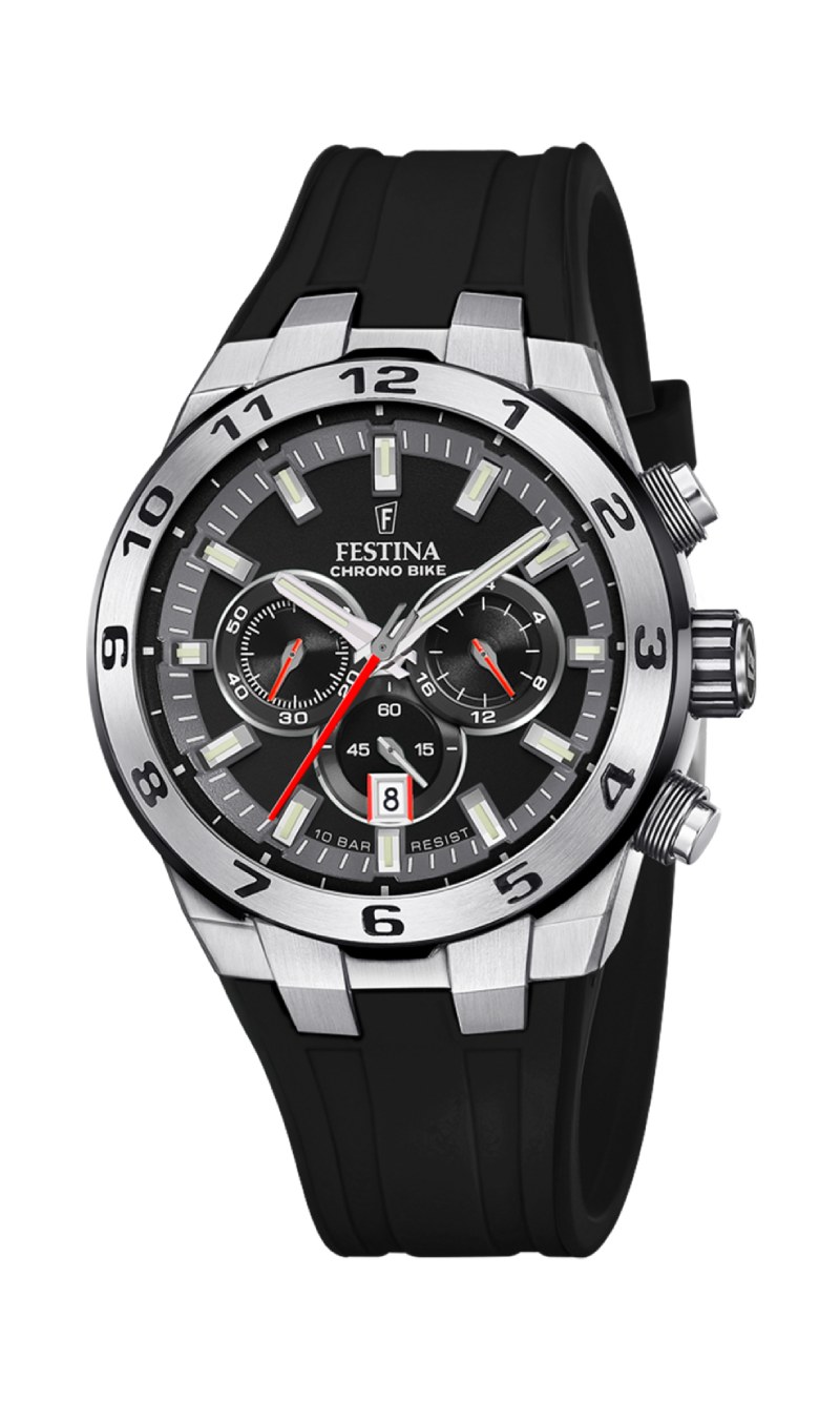 Para la mayoría de los casos, un reloj con caja de acero va a ser la pieza que nuestro padre va a ponerse todos los días. Por eso, hemos fichado este reloj de Festina. El modelo Chrono Bike brilla por su aspecto deportivo y funcional al mismo tiempo que por su aire clásico y atemporal. En el exterior, tenemos una caja de acero inoxidable de 44,5MM decorada con un bisel con indicadores negros. En el interior, tenemos un dial con función de cronógrafo y acentos en rojo. Y rematando el look, una correa de goma negra para mayor comodidad.