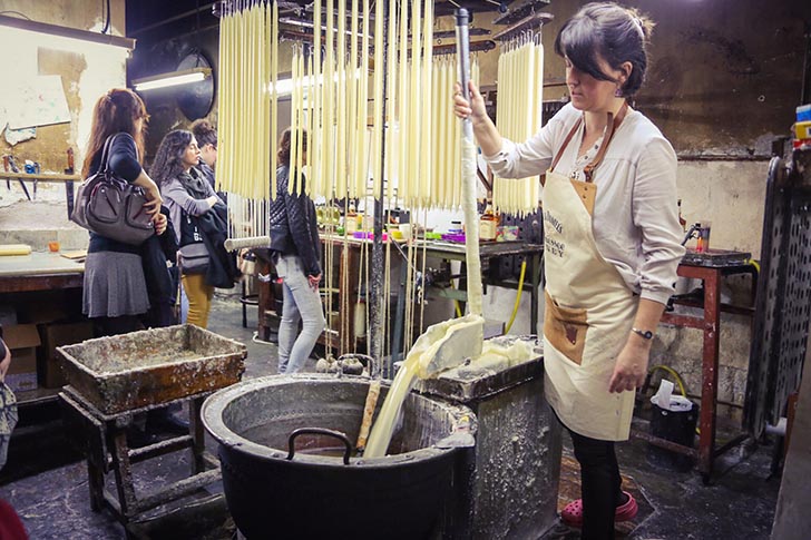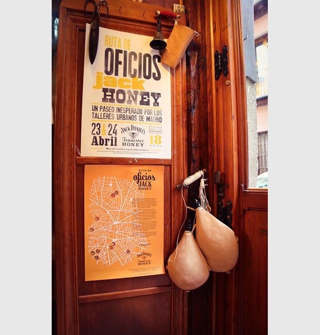 En nuestro siguiente destino sube enormemente la temperatura. Desde toda la calle Paloma se puede oler a vela, a cera derretida. Y es que nos aproximamos a la Cerería Ortiz, donde llevan varias generaciones dedicados a la creación de este instrumento espiritual. Con minuciosidad y entre grandes odres de cera ardiendo, dan luz a este objeto todavía tan necesario y tan arraigado en nuestra cultura. Y por último, nos detenemos en el taller que quizá más nos llamó la atención de este recorrido. En un pequeño local de la calle Águila encontramos a Julio Rodríguez, el último superviviente creador de botas de vino. Con una explicación magistral, nos desvela todos los secretos de su oficio y nos fabrica ante nuestros propios ojos una bota desde cero. Algo irrepetible. La Ruta de Oficios Jack Honey no nos ha devuelto al pasado, ni mucho menos, todo el arte creado con las manos sigue vivo y eso es lo que ha querido demostrar. Porque todo lo fabricado con mucho amor es dos veces bueno. #Jackhoney