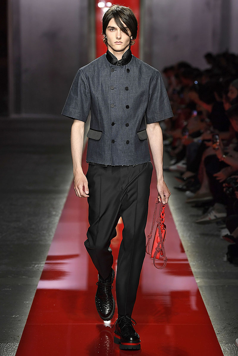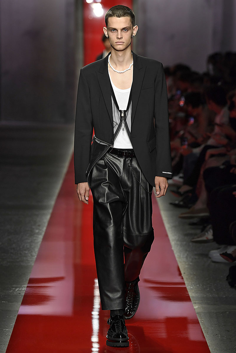 Los pantalones definen el modo general de toda la colección de Dsquared2 SS20. Tres siluetas diferentes pero con un punto en común: la cintura alta. De esta, sobresale el toque distintivo que le da el “mood boxeador” a los luchadores denominados #Red2: La cinturilla de los bóxers de raso llenos de estampados coloridos casa a la perfección con el resto de prendas de la colección.