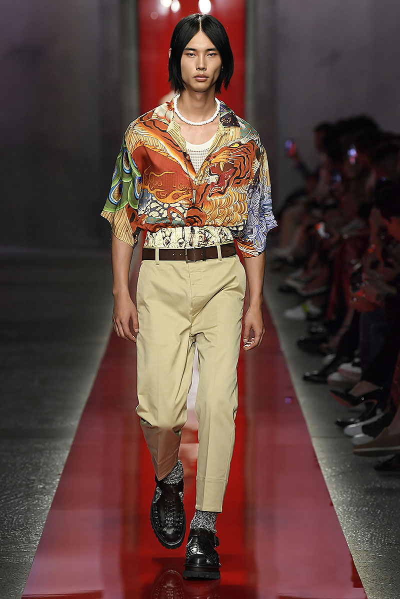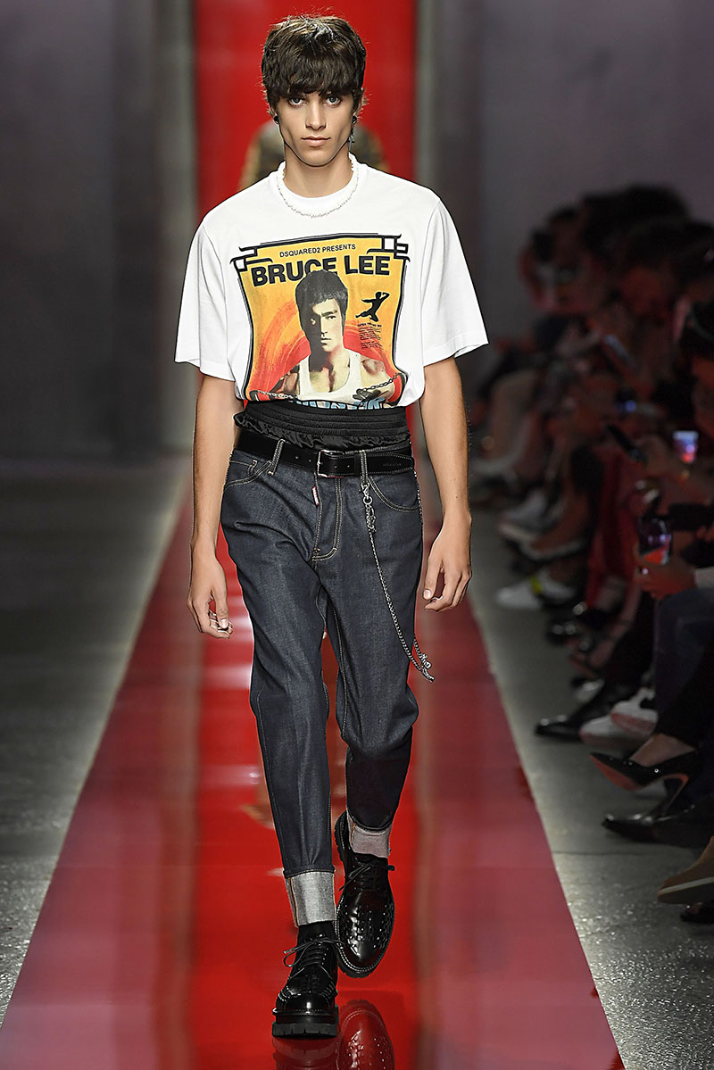 Como una horda de boxeadores amantes de la cultura pop llenos de espíritu pacifista, los modelos del desfile de la nueva colección de Dsquared2 SS20 pasearon por el particular jardín de verano de la firma canadiense con sede Milán. En este nueva entrega, los gemelos Dean y Dan Caten se inspiran en las películas de Hong Kong de los años 70 en Hollywood para hacernos volver al pasado a través de la moda más vanguardista y actual. Desde estampados de flores gigantes, pasando por los bordados con tigres, hasta las camisas abotonadas de manga corta y los trajes de corte recto, todas las prendas de la colección toman las referencias estéticas más notorias de la moda en las ultimas décadas.