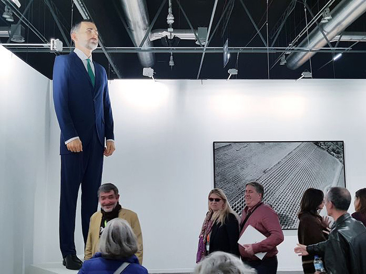 No hubo polémica este año en ARCO. O muy poca. Aunque no fue porque Prometeogallery no la buscara. El ninot de Felipe VI, creado por Eugenio Merino y Santiago Sierra, fue sin duda de lo más fotografiado de la feria. Se vendía por 200.000 euros y el comprador se comprometía, por contrato, a quemar la obra antes de un año. La cuestión no es evidentemente que tengan derecho a vender este trabajo desde la galería. Es simplemente que la obra es mala. Insignificante en lo estético y vacua en lo conceptual. Hay arte político muy bueno -véase el stand de Mor Charpentier o algunas obras de la galería ADN. Y también hay arte político malo. Este es el caso. Merino y Sierra han hecho cosas mucho mejores. La subversión en el arte no se mide por el escándalo generado en Twitter y Facebook. Por no decir que esperamos con ganas saber quién es el “revolucionario” anti monárquico que se va a gastar ese dinero en quemar un ninot. La revolución del pueblo.