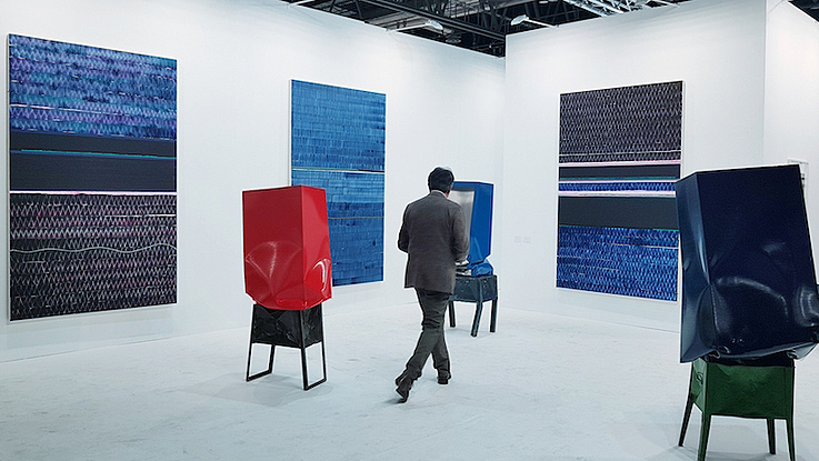 La proliferación creciente de ferias de todo tipo, la globalización del mercado y la escasez de tiempo por parte de los coleccionistas han hecho que la selección y el montaje de stands se haya convertido en todo un arte. Con un espacio a menudo reducido y un white cube de lo más soso, el galerista debe atraer la mirada de los futuros compradores sin que su espacio se transforme en un supermercado.
