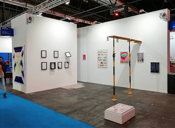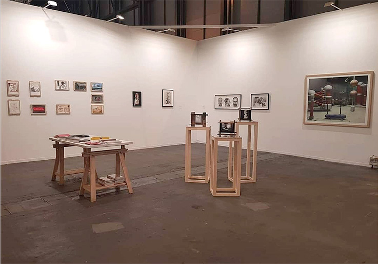 Primera participación en Arco para esta joven galería de Bucarest llamada Anca Poterasu. Una propuesta que ha pasado un poco desapercibida, quizás por su dimensión sobria y algo austera, pero que cabe destacar por su apuesta exigente y decidida de una escena poco conocida pero que sube cada vez más y alberga muchos tesoros potenciales. Como buena presentación inaugural, el stand permitía descubrir grandes referentes como las fascinantes fotografías de Matei Bejenaru o las composiciones en blanco y negro de Decebal Scriba. Pero los más sorprendentes y destacables eran, sin duda, los trabajos de Aurora Király, ya sea su fina y reivindicativa serie de dibujos Heroïnes o sus Viewfinder, unas cajas de cartón en forma de dispositivo fotográfico que reinterpretan la memoria colectiva a través del medio visual. Un stand que se asimila con el tiempo.