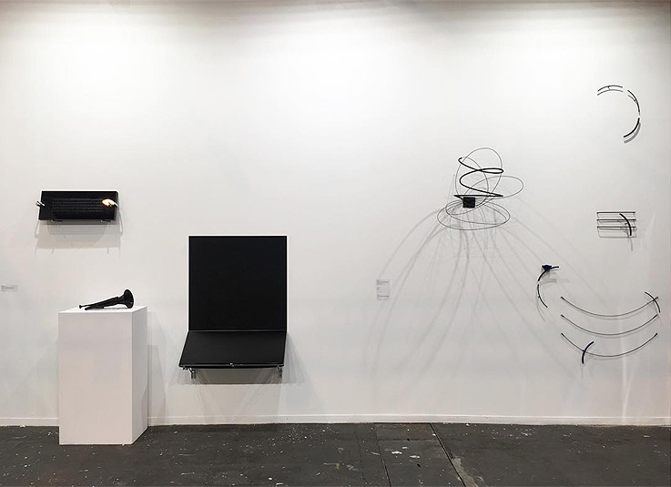 Como dijimos al visitar la FIAC 2018, últimamente se están poniendo de moda los stand individuales con solo projects espectaculares y muy visuales. Una manera de atraer fácilmente al espectador y de luchar contra la saturación estética y la infinidad de estímulos y nombres al que se ve sometido el visitante de una feria. Una buena solución para que hablen de ti. Pero un riesgo, ya que el galerista lo apuesta todo a un solo nombre y suelen ser obras más difíciles de vender. Quizás por eso -las galerías son más pequeñas y hay muchas, como hemos comentado- en ARCO los stands individuales escasean y son de formato más expositivo que instalativo. Pero la solución, algo intermedia, es la partición del espacio para presentar una obra única de un artista –lo que llaman ahora proyectos especiales. Una alternativa que ha funcionado muy bien este año en la feria. Tanto por la cantidad de propuestas de este tipo como por su alta calidad, que permite disfrutar de obras de formato diferente sin arriesgarse demasiado. Destacan las maravillosas esculturas matemáticas -reflexión sobre el lenguaje- de Marlena Kudlicka en Zak Branicka, la fascinante instalación con fondo azul de Teresa Solar en Travesía 4, la instalación escultórica de Lucia C. Pino en Ana Mas Projects y los estimulantes Elementos para un discurso de Antonio Fernández Elvira en Espai Tactel.