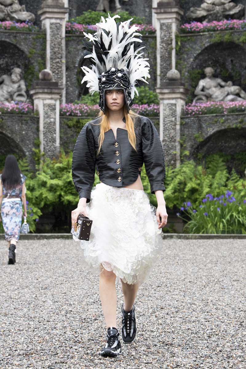 Nicholas Ghesquière nos lleva en un viaje al Palazzo Borromeo para presentarnos un cuento de hadas acuático con matices barrocos para su Louis Vuitton Cruise 2024 en los jardines botánicos de la propiedad.