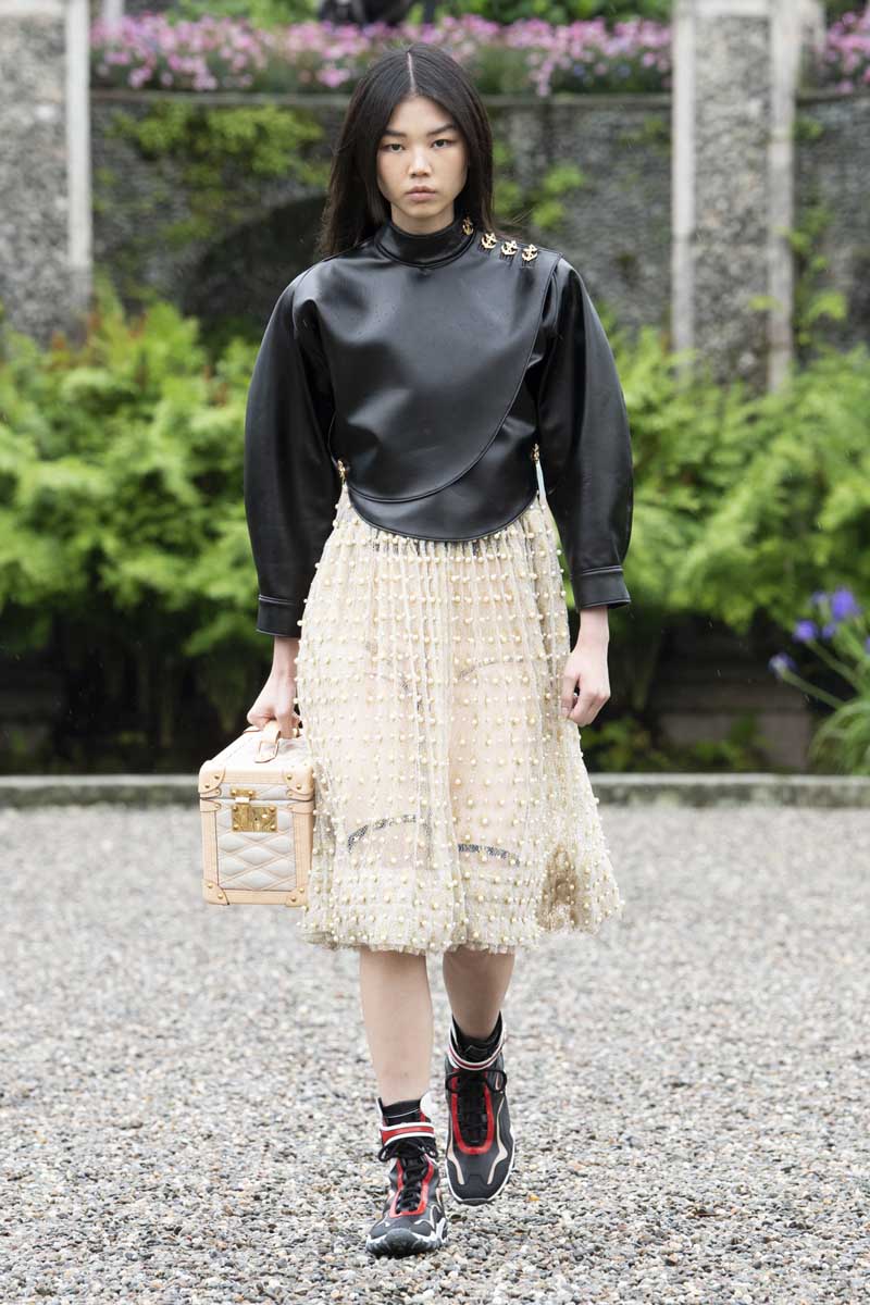 Se había perdido ese componente de fantasía y cuentos de hadas en la moda hacía mucho tiempo ya; eso hasta que pudimos ver la colección Louis Vuitton Cruise 2024 presentada en los idílicos jardines barrocos del Palazzo Borromeo en Italia. La colección nos habla sobre una metamorfosis de una criatura acuática para descubrir las maravillas de la tierra firme; algo así como si se contara La Sirenita a través de un desfile de modas firmado por uno de los diseñadores de womenswear más interesantes.