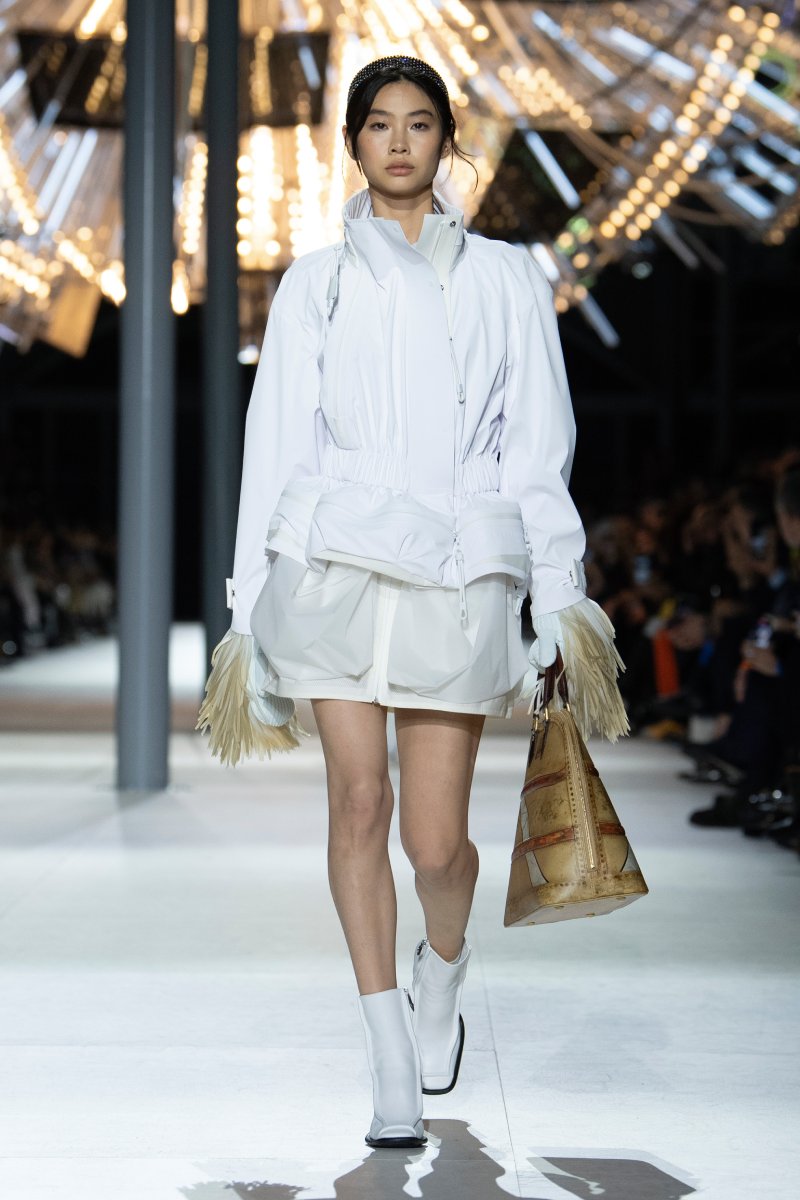 La colección de Louis Vuitton Mujer FW24 abre con una serie de cazadoras técnicas al más puro estilo de la maison. Sus cortes ligeramente oversized y relajados, a juego con sus juegos de bolsillos cargo, sirvieron para aportar deportividad chic al asunto. Como contraparte, vestidos transparentes con lentejuelas como prendas casuales más arregladas. Seguidamente, las clásicas bombers de nylon decoradas con Monogram sirvieron de antesala para los platos fuertes. Y claro, entre cada look, un conjunto de faldas escultóricas decoradas con estampados históricos.