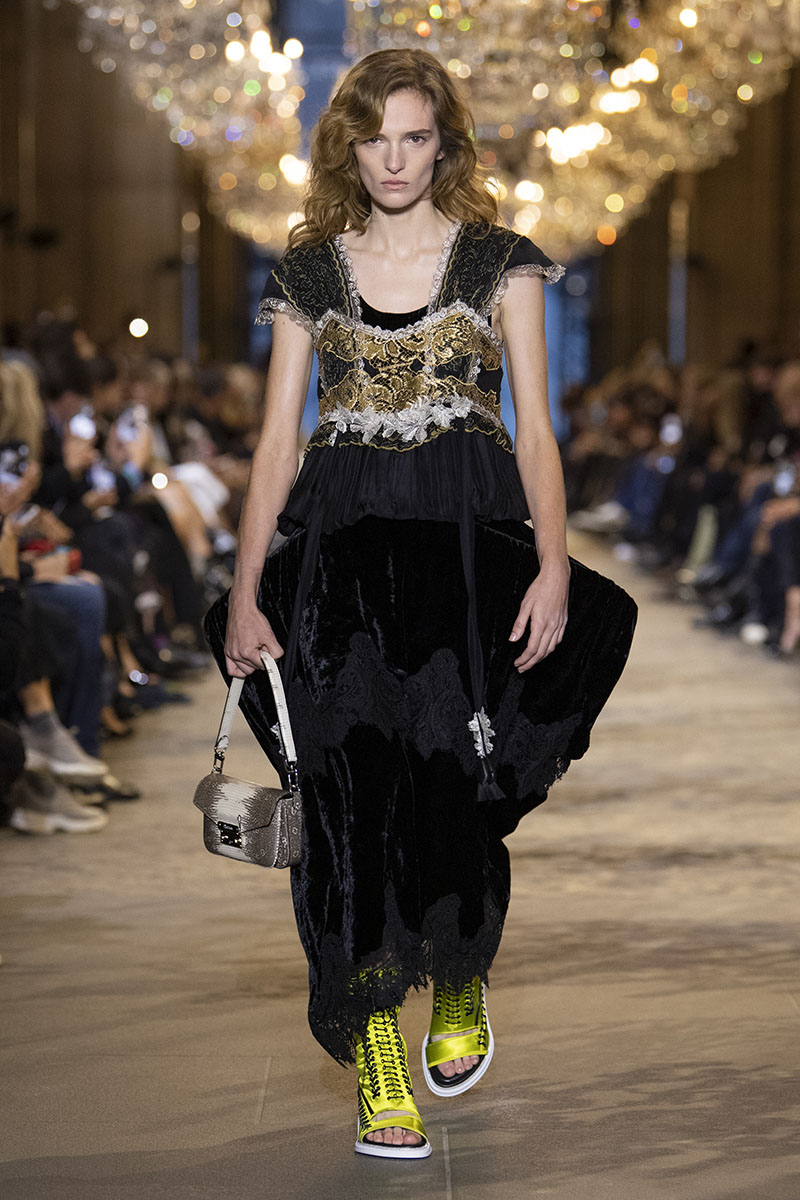 Los looks, están construidos haciendo referencia a las vestimentas de épocas pasadas, desde vestidos lenceros de la época victoriana, llenos de minuciosos detalles y ornamentos, hasta otras siluetas del renacimiento. Estas se mezclan con algunas de tendencias más icónicas de los 2000 como los pantalones debajo de vestidos.