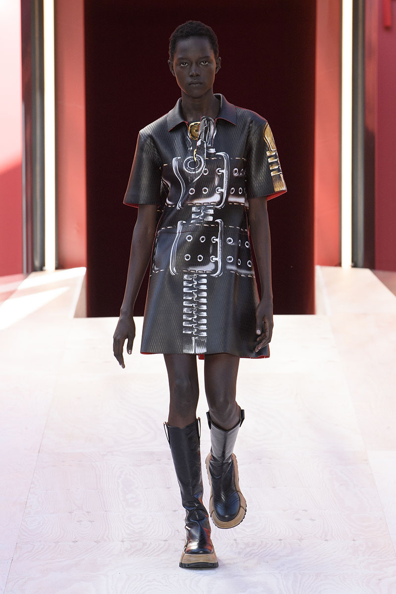 En los pasillos de la gran estructura con forma de “flor monstruosa palpitante”, tal y como ha descrito el artista Philippe Parreno, desfilaron las prendas de la nueva propuesta de Louis Vuitton para la próxima temporada primavera/verano 2023. Esta colección está directamente dedicada a la feminidad, maximizándola a través de la redimensión de elementos como los maxicinturones, los maxibolsillos o las maxicremalleras que encontramos en la mayoría de las prendas y accesorios.