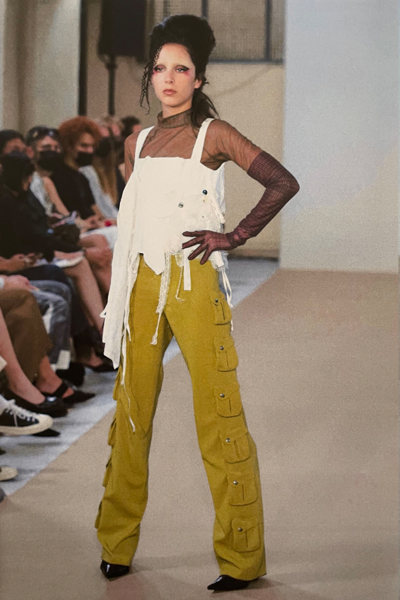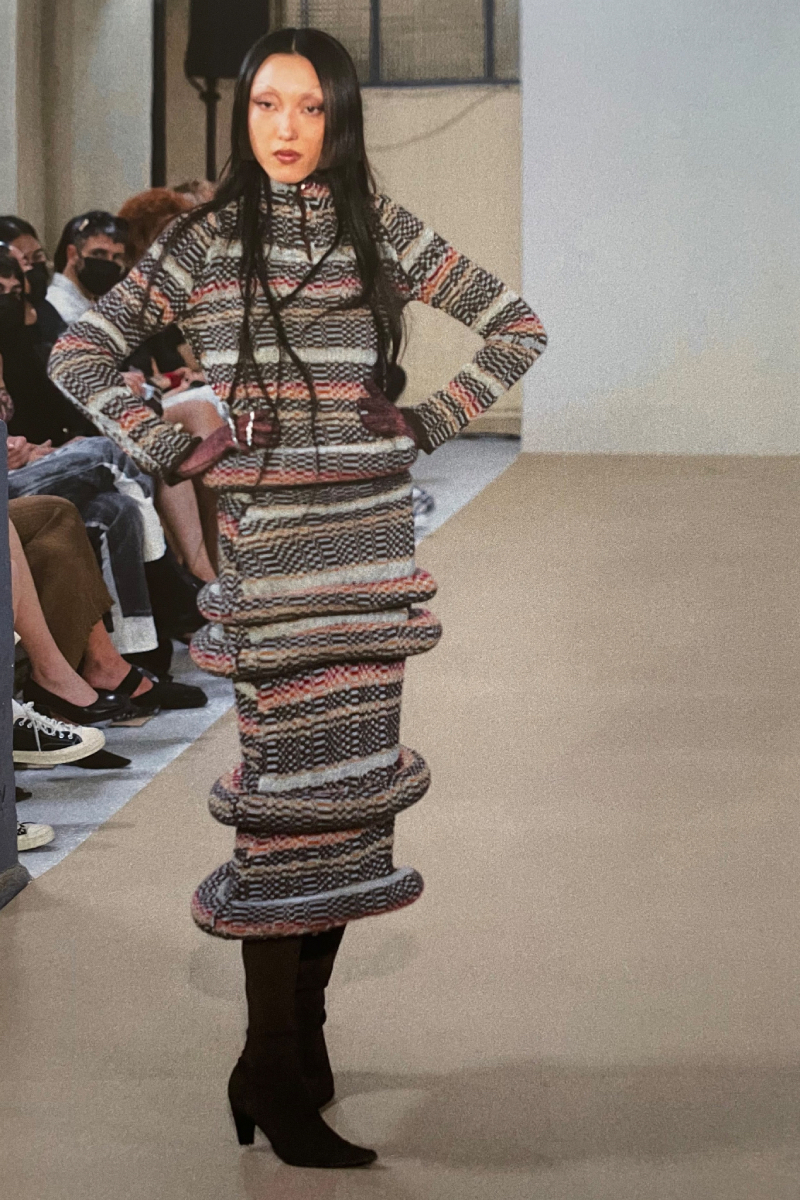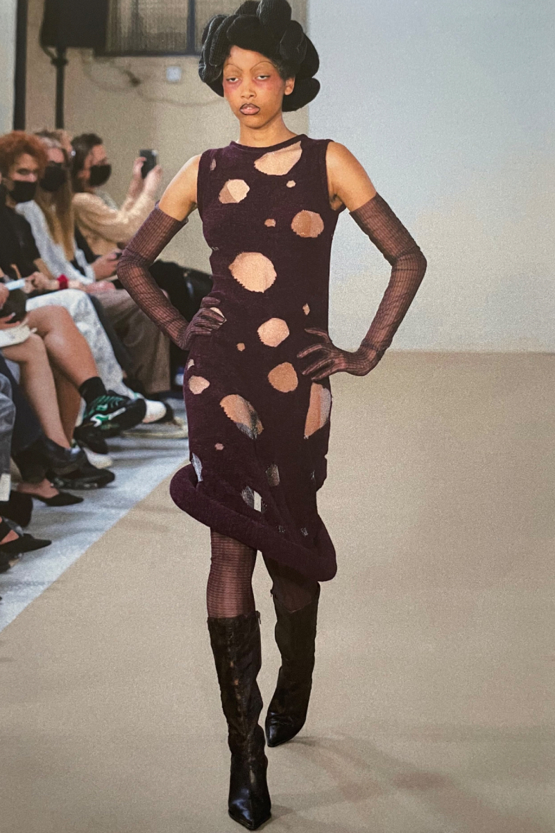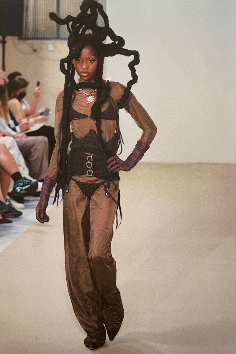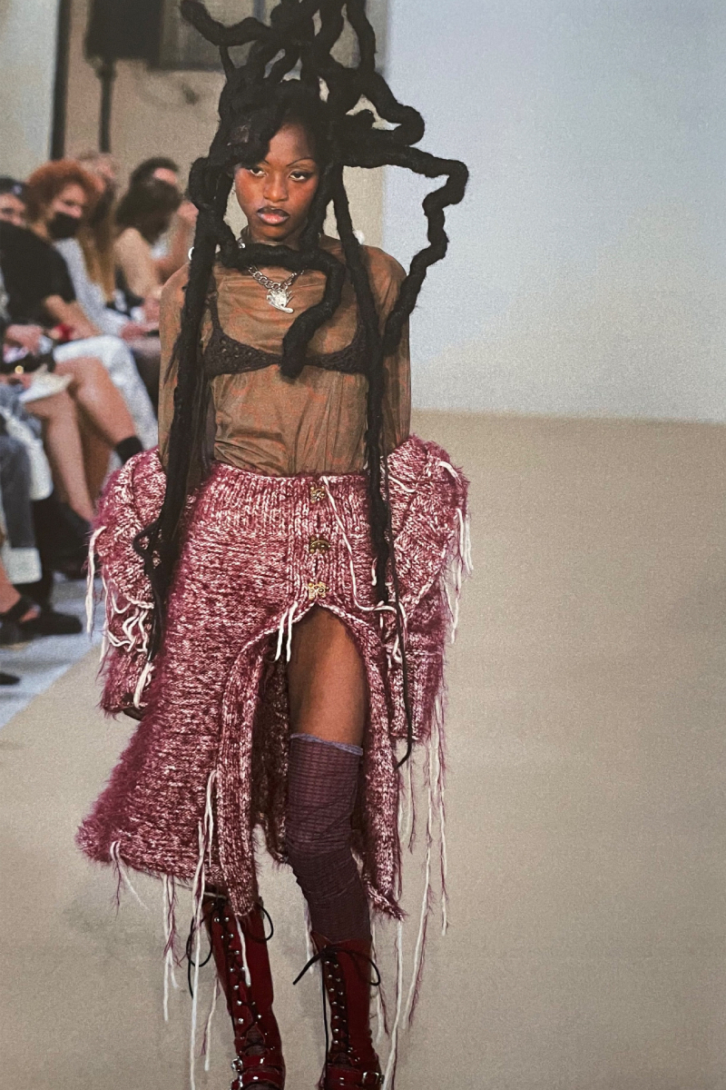 La directora creativa de la firma se graduó en Central Saint Martins y lanzó su marca homónima en 2019. Obsesionada por el punto, y todo lo que es capaz de crear con esta técnica, adora trabajar con tejidos frágiles y prendas que realcen la sensualidad, forma y poder del cuerpo femenino.