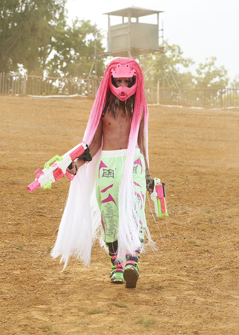 Para el video de presentación, la diseñadora invitó a tres personajes principales que están muy conectados con este universo de los limites y las experiencias de riesgo. Primero aparece el surfista profesional estadounidense Sean McInerney, a.k.a Poopies, del legendario equipo Jackass, al que le siguen Lorenzo y Rico, dos artistas que conquistaron el mundo del rap francés por sorpresa.