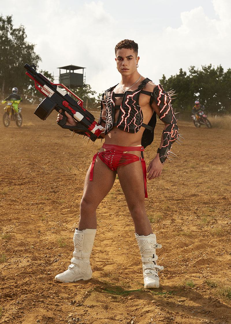 Uno de los puntos fuertes de la nueva colección Adrenaline de Lula Laora SS23 es la sastrería unisex desarrollada a partir de ropa de motocross reciclada, que toma forma a partir de llamativos vestidos, corsés y tops con lazada estilo abanico. Además de la ropa de motocross reciclada, Lula también ha utilizado otros materiales como el cuero vegano, el PVC y la malla para crear los nuevos diseños.