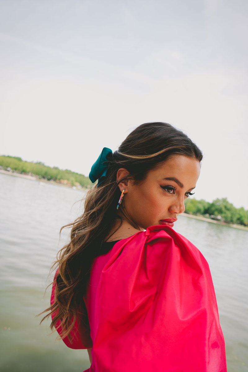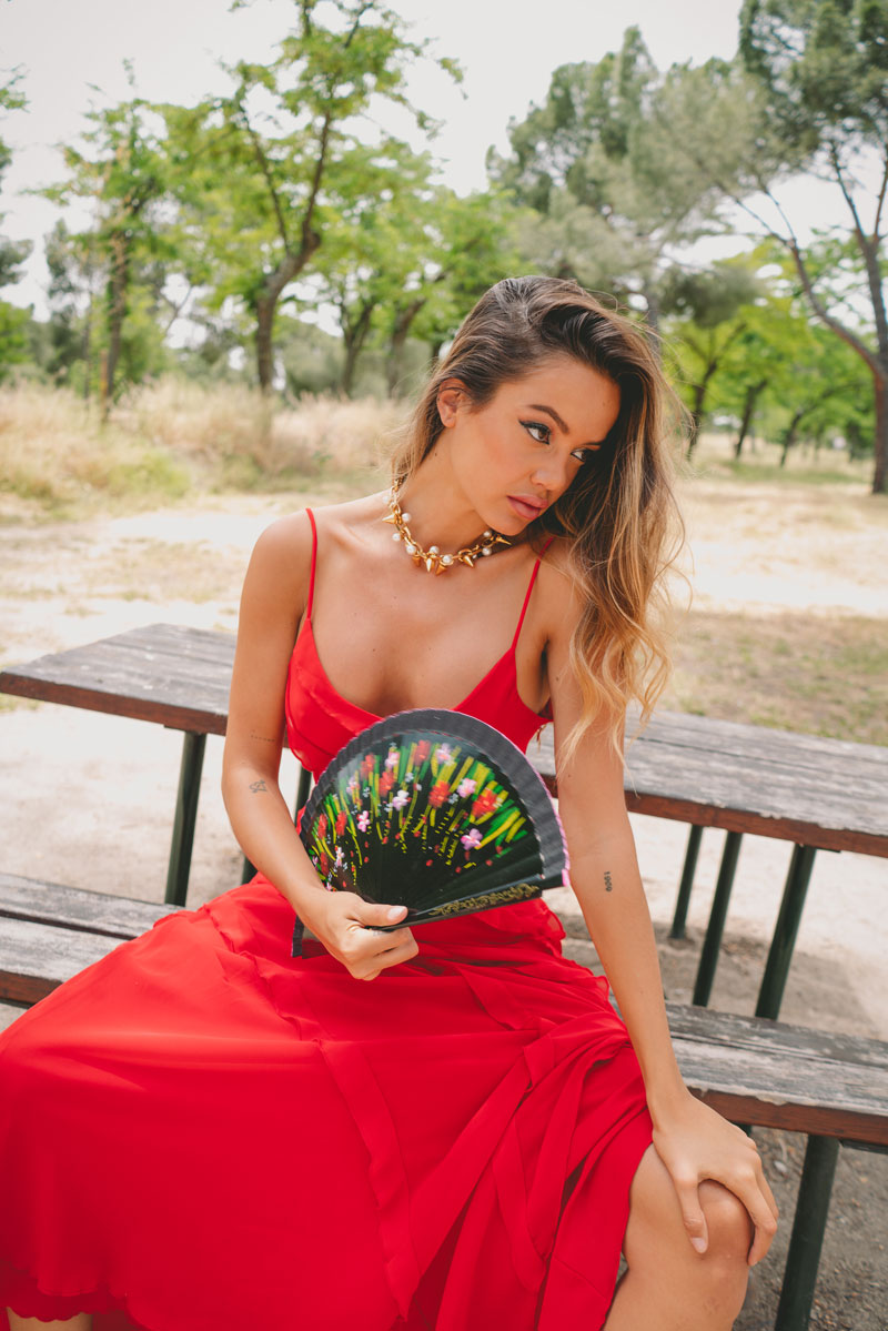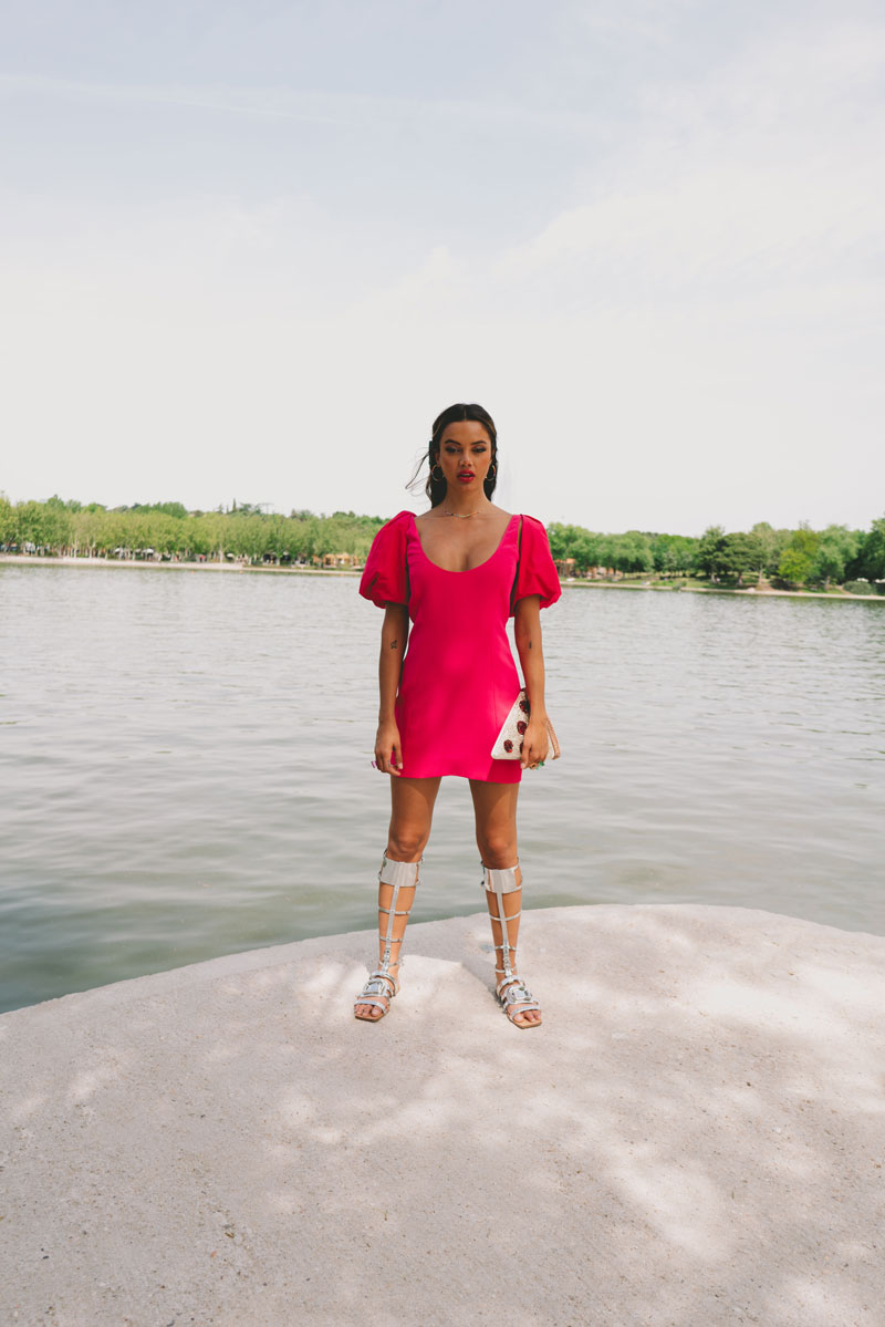 Luna Sobrino con vestido Pinko, sandalias Roger Vivier, bolso Kate Spade, lazo pelo You Are The Princess, anillos Joys Accessories