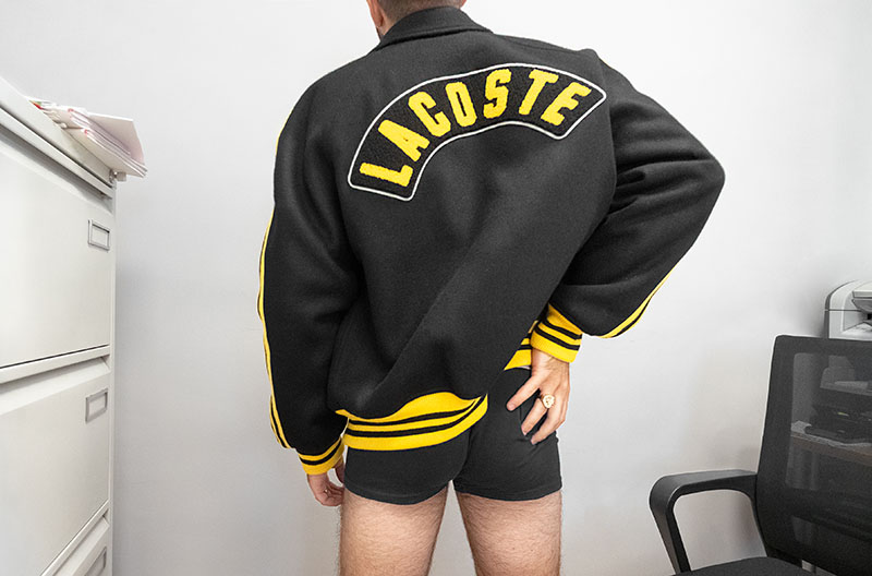 Foto Arriba: Carlos Giménez lleva chaqueta de Lacoste + Camisa de YSL Vintage + Sandalias y calcetines de Camperlab.