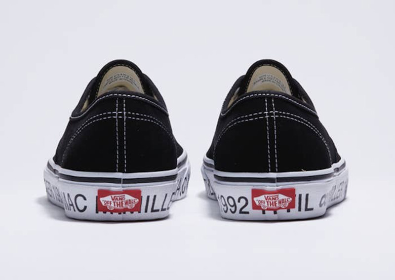 La mediasuela de las Authentic de Vans X Mac Miller presenta un acabado estándar para este tipo de modelos, pero ahora se adorna con un texto que lee “Mac Miller 1992 Till Infinity”, señalando el aura atemporal del artista. Como es de costumbre, un parche de goma en rojo decora el talón de estas zapatillas.