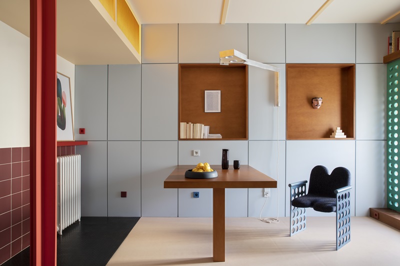 Proyecto destacado: Habitación Policromada (2023) (Junto a Estudio Reciente): “En Habitación Policromada partimos de una ficción. Como si de un proyecto nunca construido de Le Corbusier se tratase, investigamos las soluciones constructivas y los materiales que utilizaba el arquitecto y los plasmamos en este espacio diseñado para Casa Decor 2023. El resultado es un mélange de sus icónicas obras, como la Unidad de Habitación de Marsella o la villa La Roche de París”.