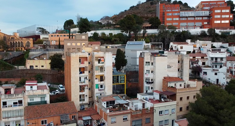 Mach detalla que su objetivo con Casa Collumpio fue “enmarcar y cerrar un pedazo de aire entre la calle de Pere Llobet y la calle del Portell, al lado del Parque Güell de Barcelona, donde se distinguen construcciones humildes junto a masías y casas de principios del siglo XX”.