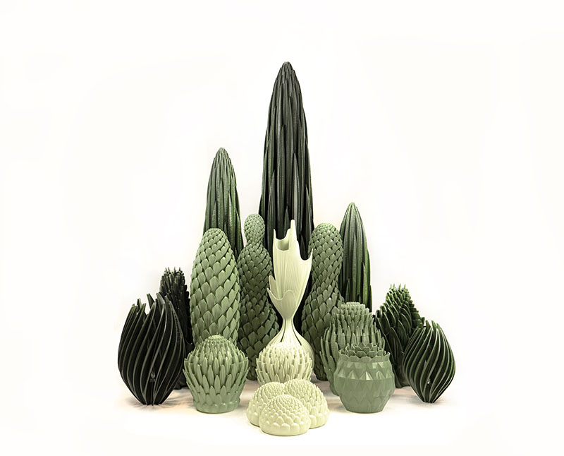 ¿Más ejemplos? External Reference y La Máquina presentan el proyecto Pure Plants, una inteligente solución contra la emergencia climática. Son las primeras plantas impresas en 3D que purifican el aire. Una familia de cactus que nacen de la investigación del arquitecto Carmelo Zappulla, fundador de External Reference y pionero en el campo del diseño experimental y nuevos materiales.. Las pequeñas esculturas respiran, están hechas con Pure.Tech, material que absorbe el CO2 del ambiente. Para producir el diseño el arquitecto ha contado con la colaboración de Aldo Sollazzo, de La Maquina, especialistas en la impresión 3D.