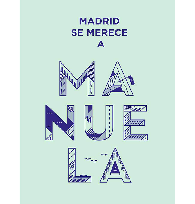 ¿Cómo contactáis con los artistas y diseñadores que están colaborando? Al principio me volví loca con la idea de contar con muchísima gente y que se transformara en algo viral así que contacté a todos mis contactos de Facebook relacionados con el mundo del diseño, la ilustración, el arte… y todos empezamos a hacer piezas y obras inspiradas en Manuela. Todos empezamos a hacer lo mismo, pedir a nuestros contactos que si les gustaba Manuela aportaran su arte. Ahora Madrid es un partido que no se financia con dinero de bancos para mantenerse independientes y por tanto su campaña es humilde, así por lo menos pueden contar con la implicación y el talento de la gente corriente (que no es tan corriente, si no excepcional).