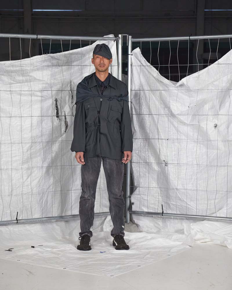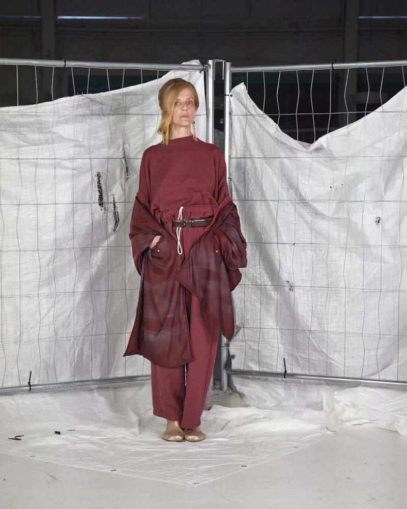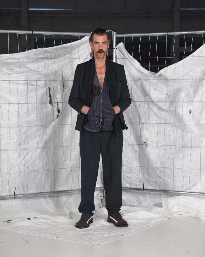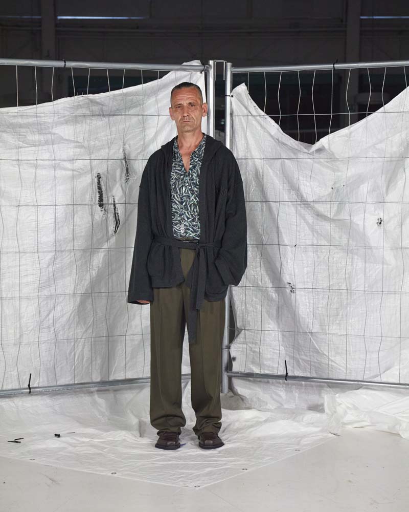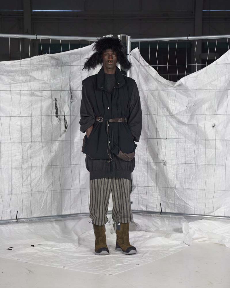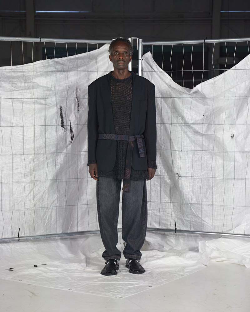 Otro de los puntos fuertes es la sastrería; vista en esta colección como un elemento subversivo que presenta americanas de proporciones experimentales y hombros caídos. La deconstrucción también se hace notar en esta oferta, donde pedazos de la misma tela sirven como elementos de constricción para el cuerpo; por supuesto, los pantalones de pinzas se imaginan a juego con sus complementos superiores, de corte baggy amontonándose sobre el calzado (que bebe inspiración de tendencias dosmileras de calzado).