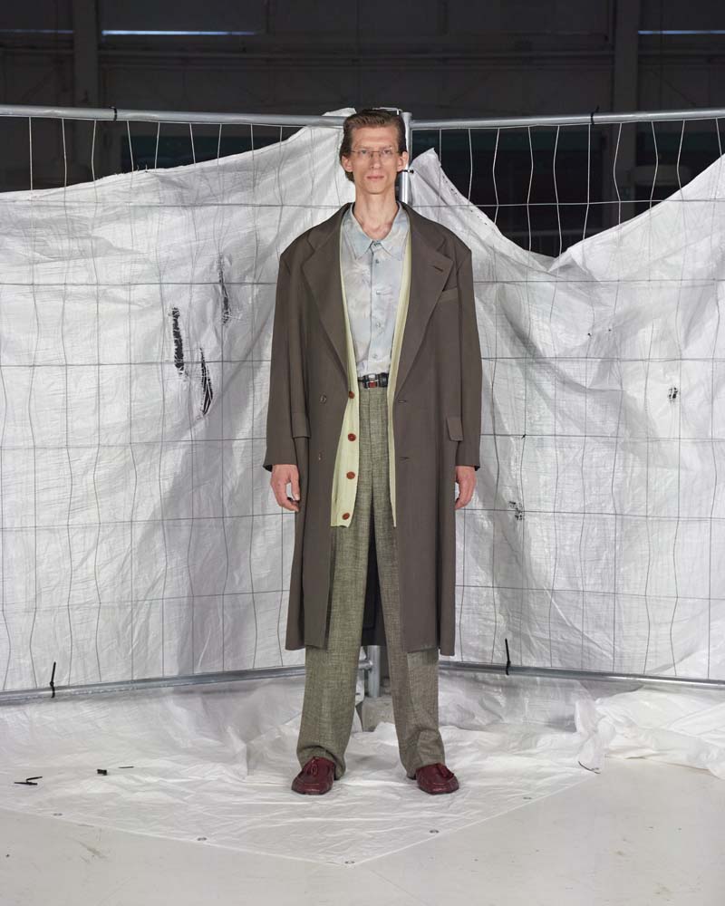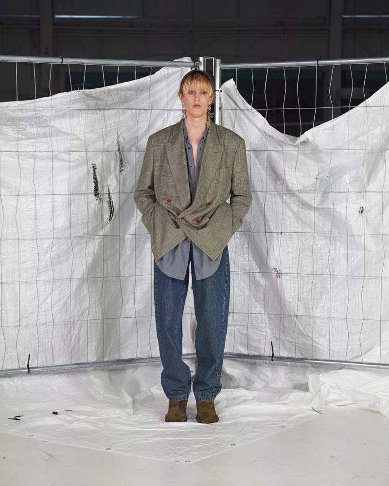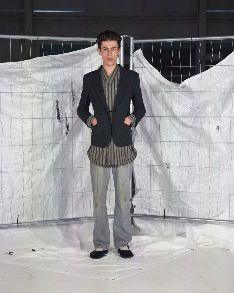 Luca Magliano juega con la sastrería subversiva, los pilares del workwear y la deconstrucción para la propuesta de primavera-verano 2024 de su firma homónima, Magliano.