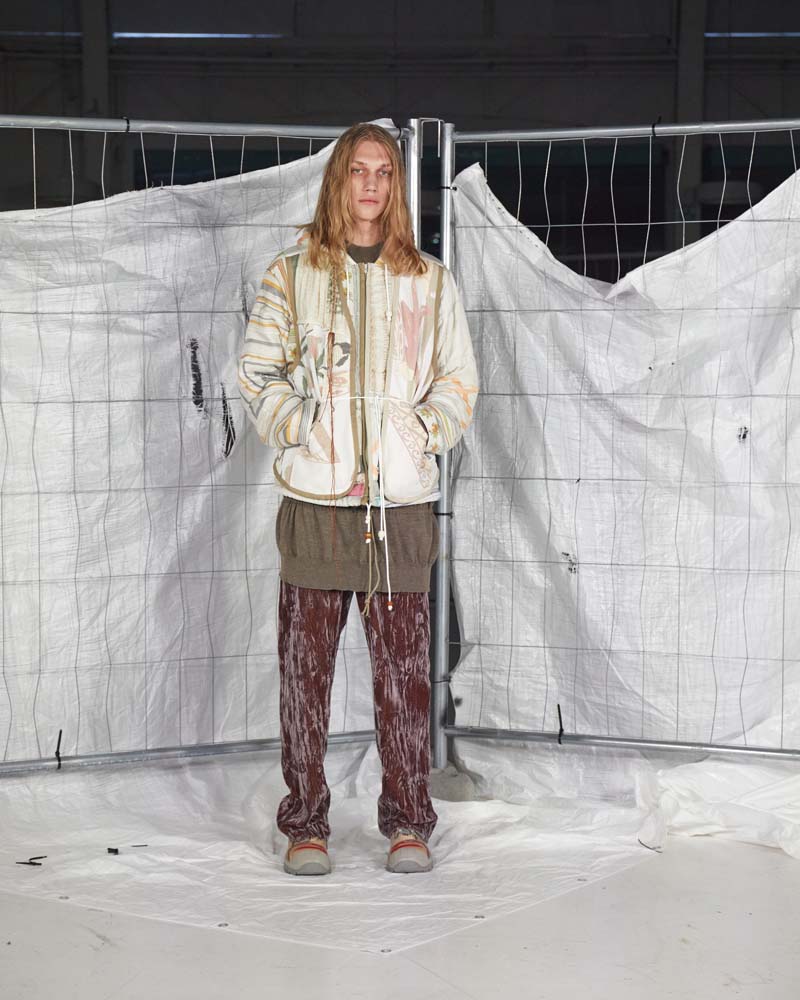 Lo que vimos entregado en Magliano SS24 no es para todo el mundo; pero si para quienes conciben que lo feo y lo destruido tiene también su propia manera de ser apreciado. Para esta entrega, Magliano propone arquetipos clásicos del armario vistos a través de una óptica de desgaste y deconstrucción. Elementos típicos de la indumentaria de trabajo como cortavientos y petos de trabajo se despojan de elementos estéticos y quedan solo como conceptos utilitarios de high-street en clave distressed.