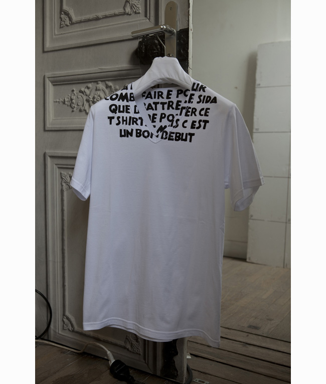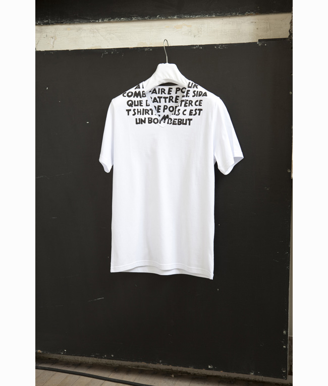 Algo así sería la traducción del texto que ilustra la camiseta de Maison Martin Margiela para la lucha contra el SIDA. Además de la versión en inglés, la firma ha decido hacer una edición anual en diferentes idiomas, con el texto marcado en inglés debajo (there is more action to be done to fight aids than wear this t-shirt but it’s a good start”. El año pasado fue en japonés, y esté en francés: “il y a plus a faire pour combattre le sida que de porter ce t-shirt mais c’est un bon debut”. La colección esta realizada en diferentes colores con el texto en otra gama cromática que contraste. El concepto de la gráfica es invitar al diálogo entre quien lleva la camiseta y la persona que tiene enfrente, ya que una vez puesta la camiseta, el mensaje es ilegible en la zona del cuello (o sea, frase recurrente: “¿y qué es lo que pone en tu camiseta”, y nada, a partir de ahí una cosa lleva a la otra). Maison Martin Margiela lleva luchando contra el SIDA desde la temporada otoño invierno 1994/95 a través de este tipo de acciones. Un porcentaje de las ventas son destinados a una ONG francesa orientada tanto a la lucha contra el VIH y la hepatitis, como a la ayuda de las personas que lo padecen: AIDES (sería buena idea que cada año hiciesen la donación a una ONG del país que corresponda al idioma en el que esté escrita la camiseta, es una sugerencia). Hasta la fecha se han vendido 180.000 camisetas y se ha contribuido con 750.000 euros. El precio de una camiseta son 65 euros. Y se pondrán a la venta, coincidiendo con el día mundial del Sida, el 1 de diciembre en las tiendas Maison Martin Margiela y su boutique online. Un buen regalo para esas fechas.