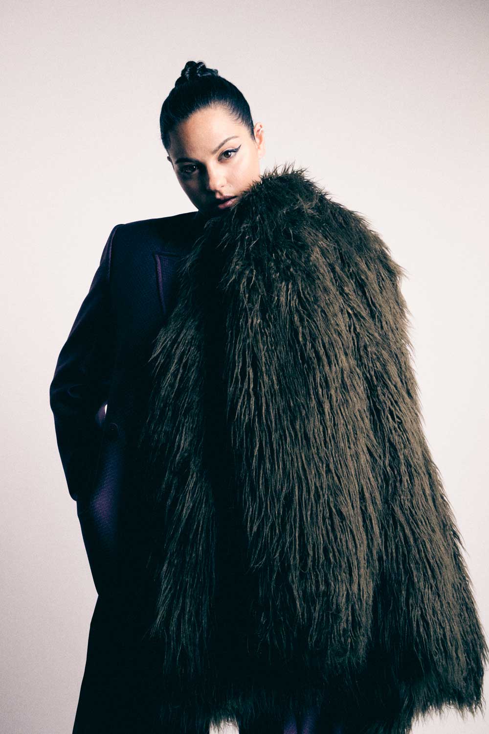 Maite Perroni con abrigo ADOLFO DOMINGUEZ, vestido ANTONIO SAGA y botas HUGO