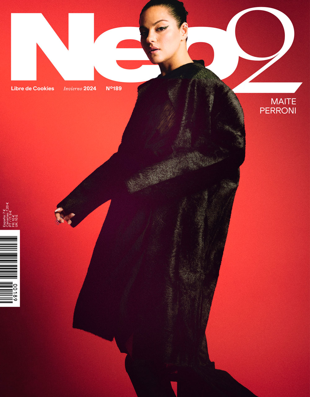Maite Perroni en portada de Neo2 con abrigo ADOLFO DOMINGUEZ, vestido ANTONIO SAGA y botas HUGO