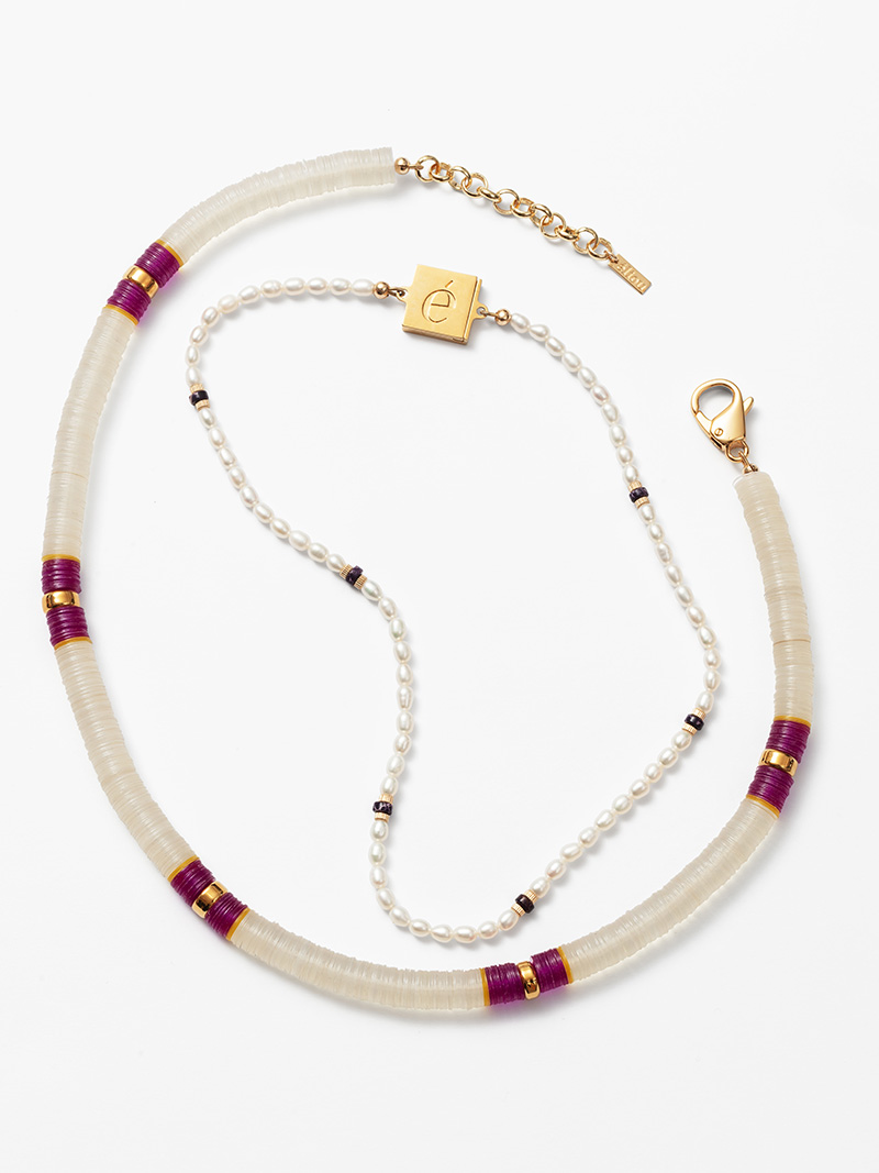 La marca Éliou ha colaborado con Maje para crear una colección de joyas exclusiva basada en la colección cápsula “Tropical Purple”. Dos collares y dos pares de pendientes han puesto el acento a la colección, entre la que se pueden encontrar accesorios, trajes de baño y piezas ready-to-wear.